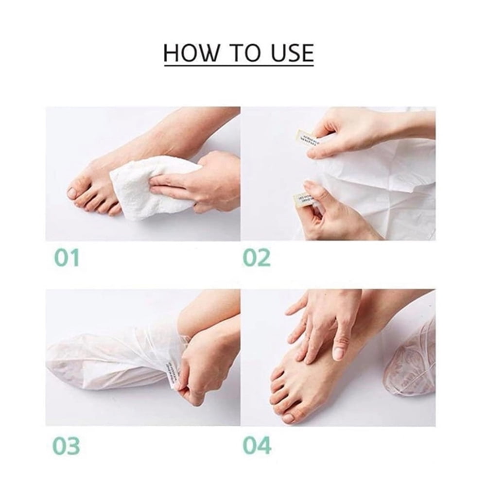 An intensive treatment mask is a good spa alternative that leaves your feet moisturized and nourished.One step foot mask to provide abundant nutrients to your feet.Containing paraffin and urea, it provides moisture and nutrients to your dry skin.Sock type envelope the whole foot, so control the foot and healthy toenail. This concentrated hydrating formula delivers extra-rich emollients deep into the dermal layers.It exfoliates dead cells, eliminating calluses.The sticker labels are provided to fix the mask around the ankle. Unlike usual two-step masks where non-woven fabric-made mask is needed to be covered with plastic bags, our 2 in 1 footmask is rich in and very convenient at use.