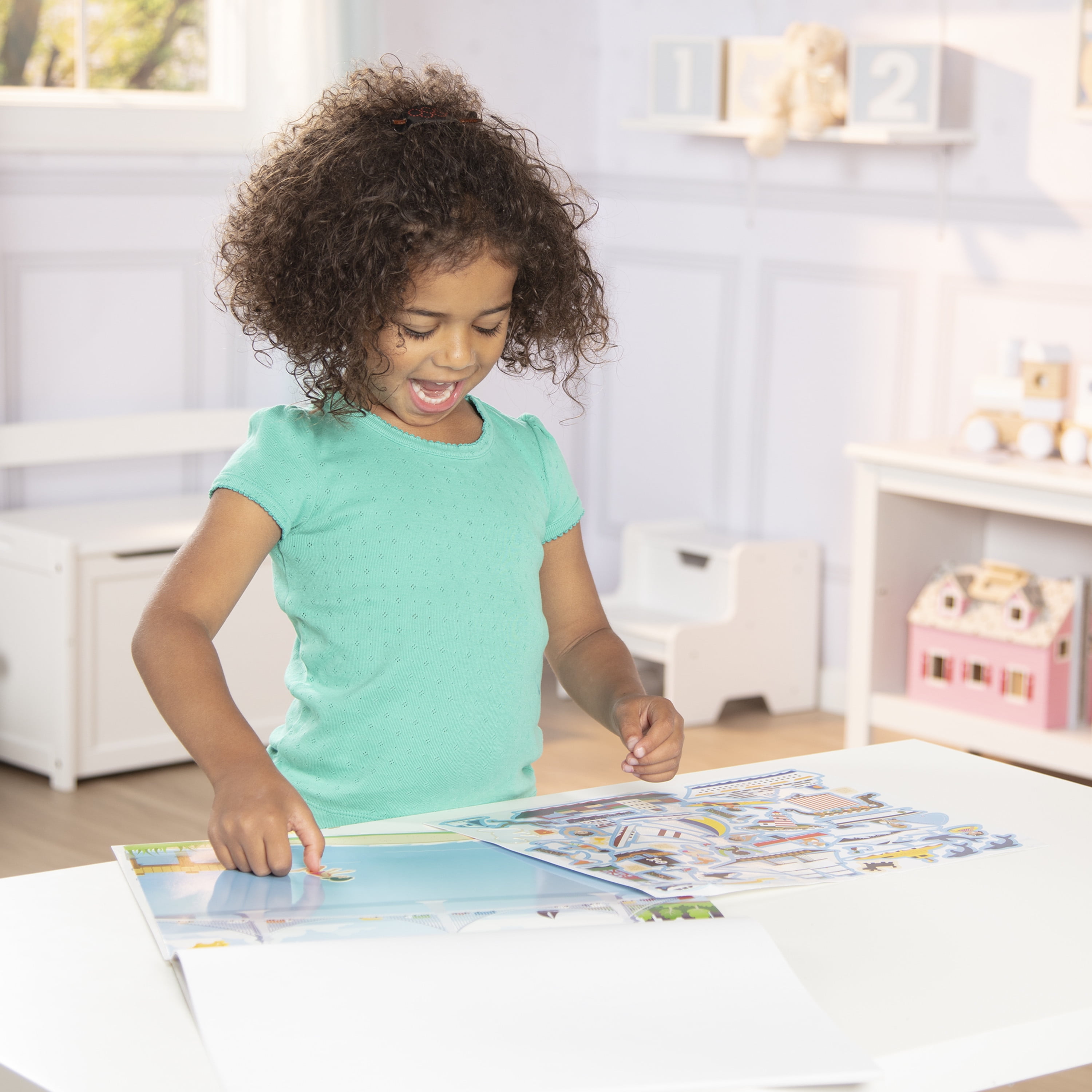 Fill the reusable scenes with 165 cling-style stickers, and create your own busy airport, train tracks, harbor, construction site, or roadway! To set the scene and spur the imagination, five glossy, full-color backgrounds feature lots of space to play creatively. They pull out cleanly too–so this cool set is easy to share. The colorful, kid-friendly stickers, which are organized by theme, stick easily, pull up cleanly, and can be used again and again to keep the action and adventure coming.