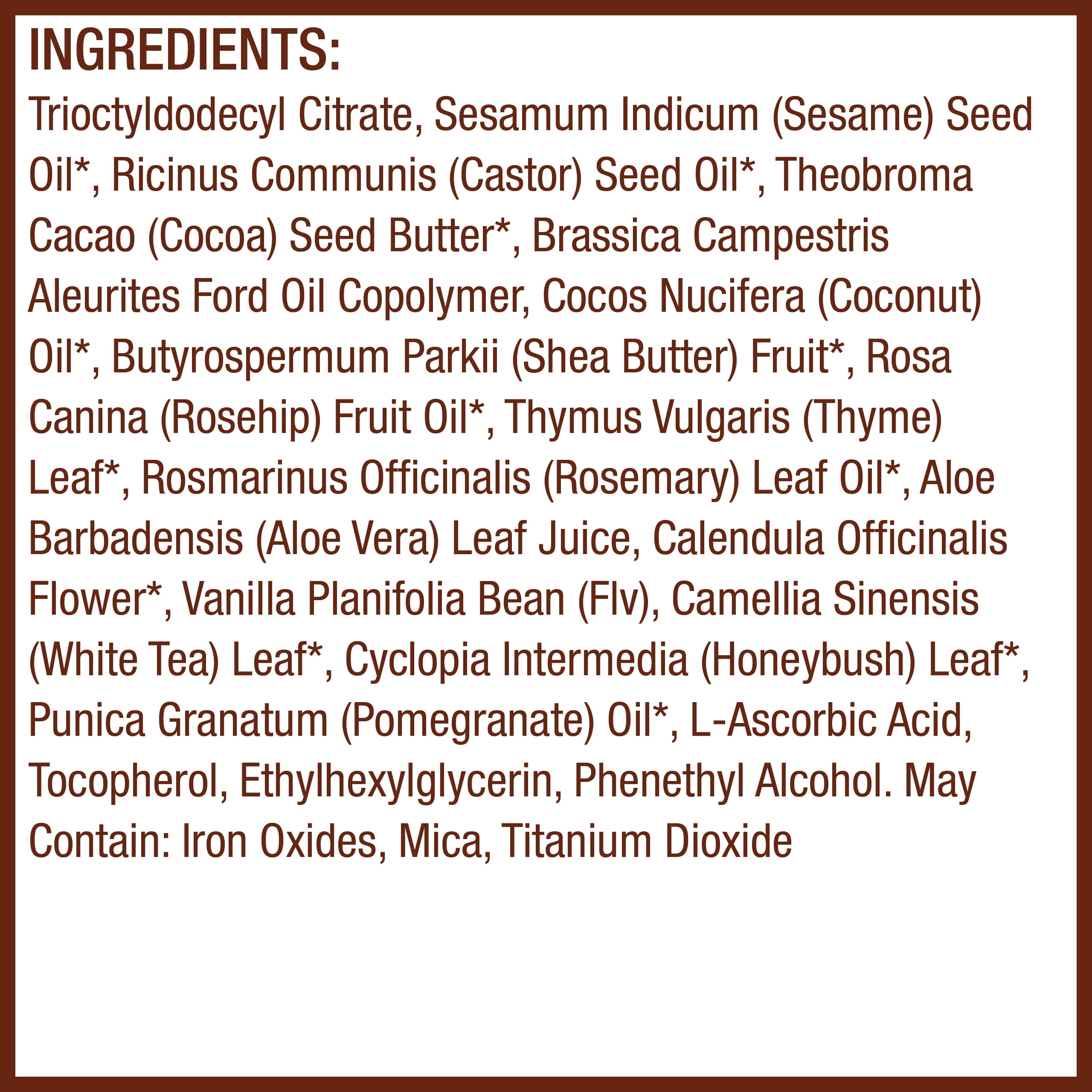 - Antioxidants – Infused with antioxidant-rich White Tea, Red Tea, and Pomegranate plus Vitamin C to protect delicate lips against free radical damage.