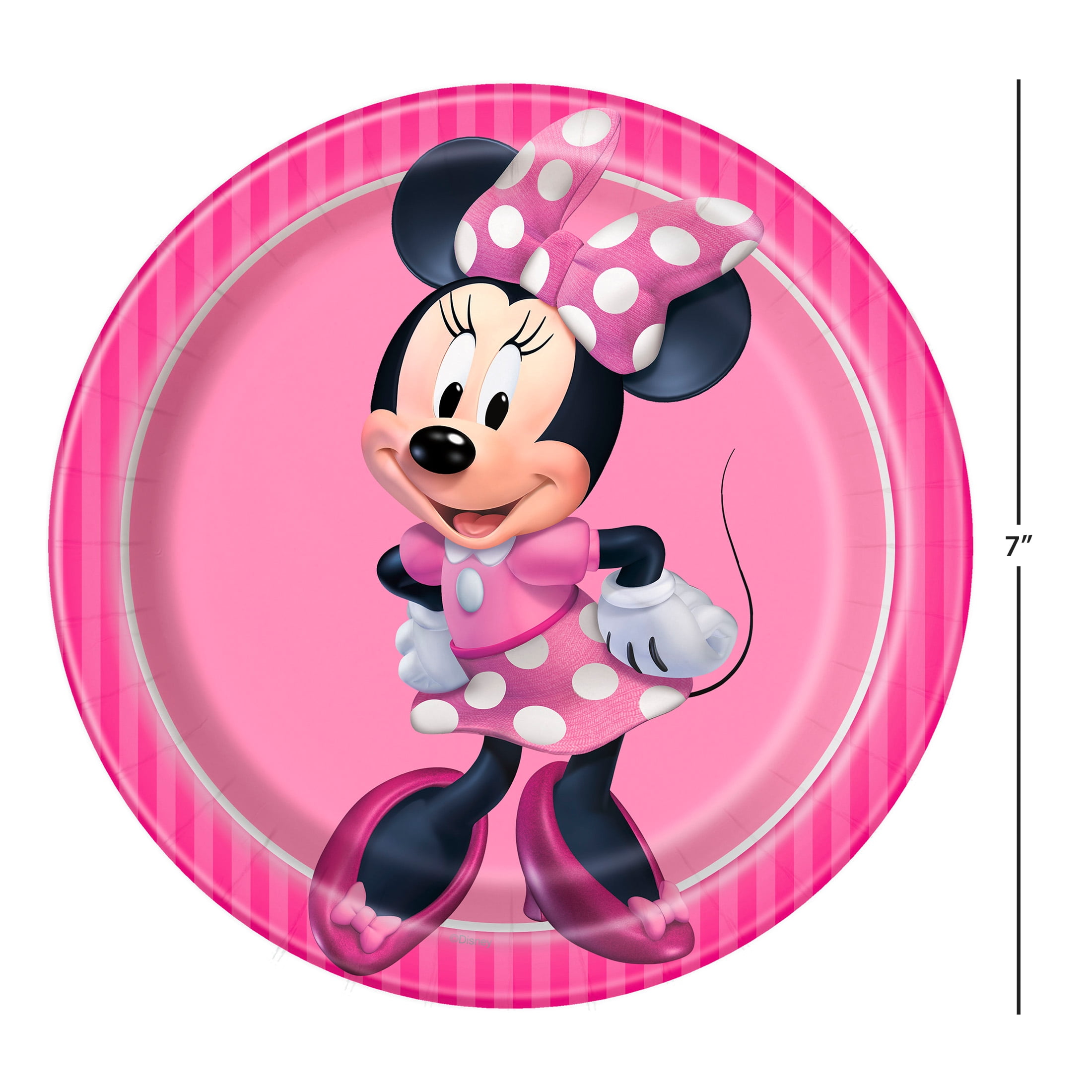 Make your party look cute as can be with our Minnie Mouse Birthday Party Tableware and Decoration Kit! Featuring pink, polka-dotted designs of Minnie Mouse, this collection will excite the guest-of-honor at your Minnie Mouse themed birthday party. This kit includes enough party supplies to celebrate with up to 16 guests! Inside, you’ll find 16 dinner plates, 16 cake plates, 32 lunch napkins, 1 plastic tablecloth, and a 7.5-foot party banner. Once your party comes to an end, you can simply throw away the disposable tableware for quick and easy cleanup. Find more magical ways to celebrate, and shop the rest of our affordable Minnie Mouse themed party supplies.