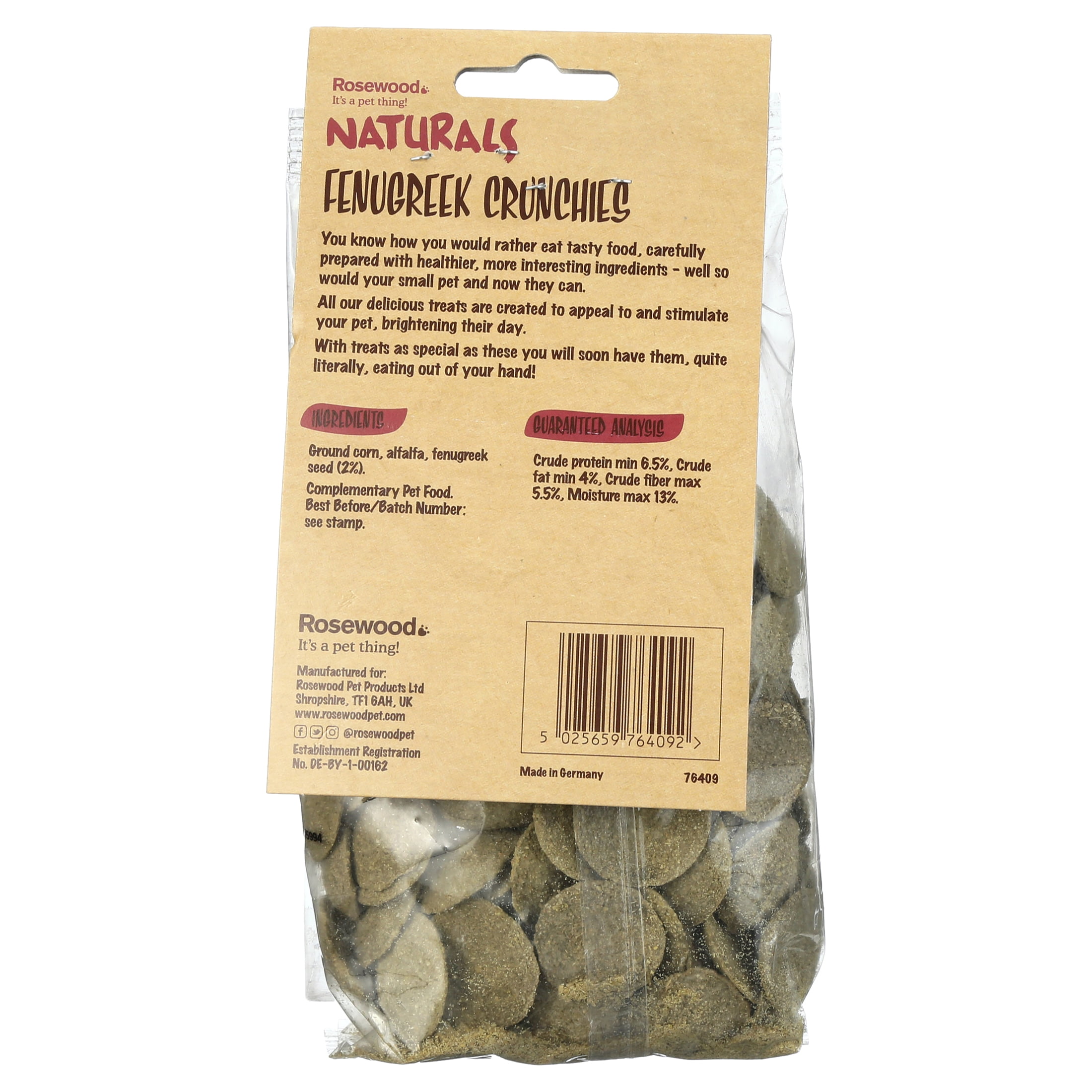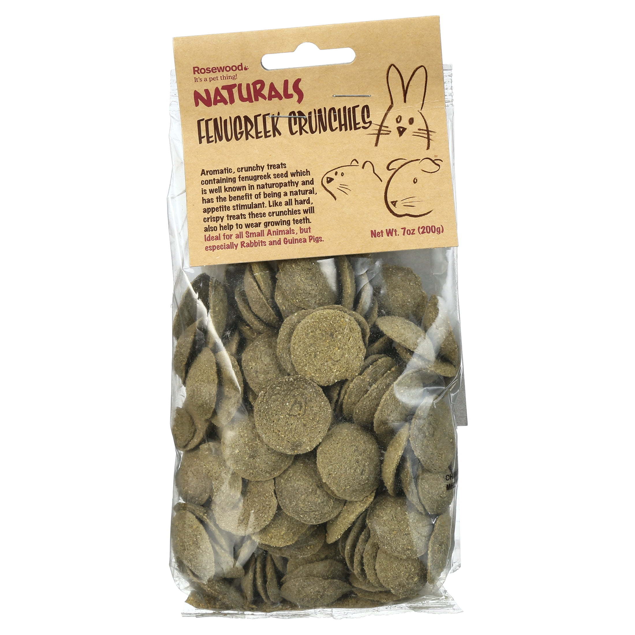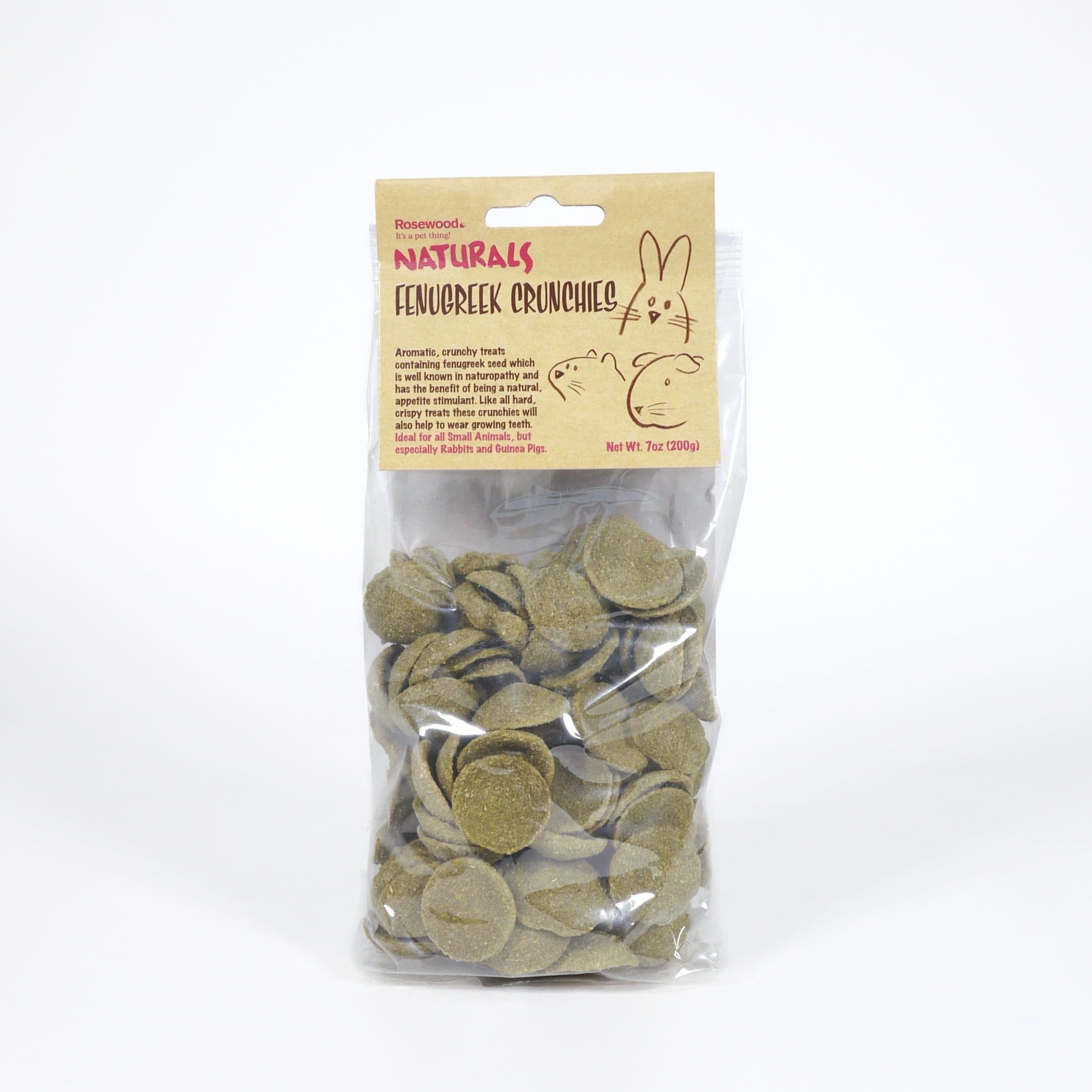 The original fenugreek-based treats. Our aromatic, crunchy treats contain fenugreek seed which is well known in naturopathy for helping digestion and has the benefit of being a natural, appetite stimulant. Like all hard, crispy treats these crunchies will also help to wear growing teeth. Ideal for all small animals, but especially loved by rabbits and guinea pigs.