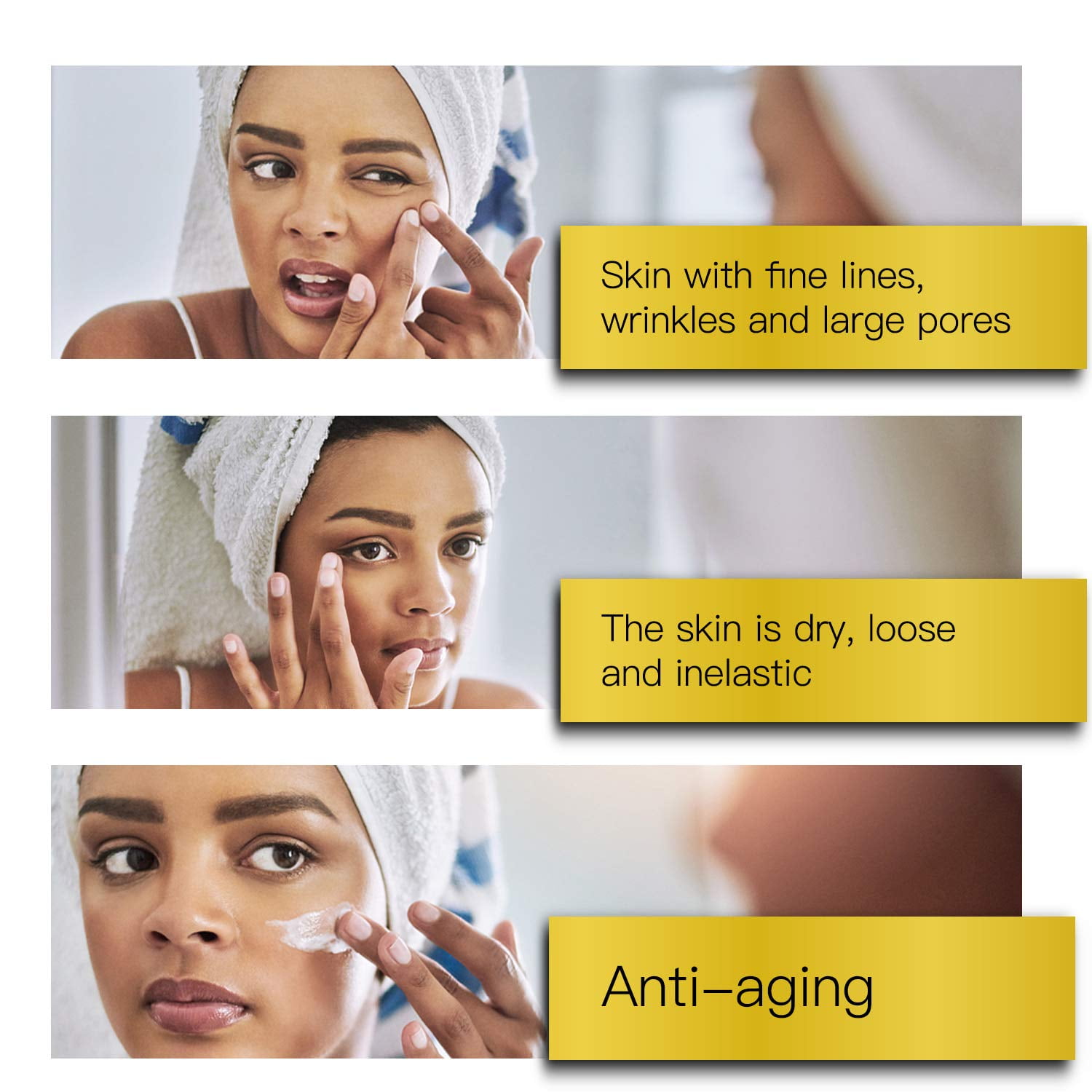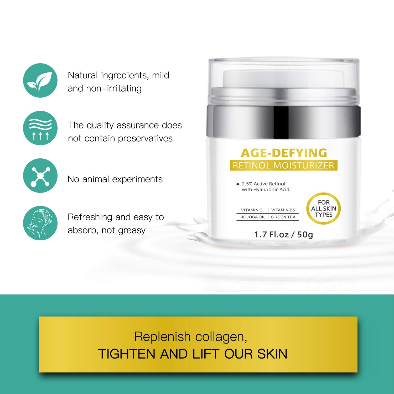 - ANTI-WRINKLE & ANTI-AGING: Our creamy anti-aging Retinol Moisturizer reduces the appearance of wrinkles, acne scars, evens and brightens skin tone, and treats hyperpigmentation. Retinol supports natural collagen production, faster cell turnover, and helps treat skin discoloration.