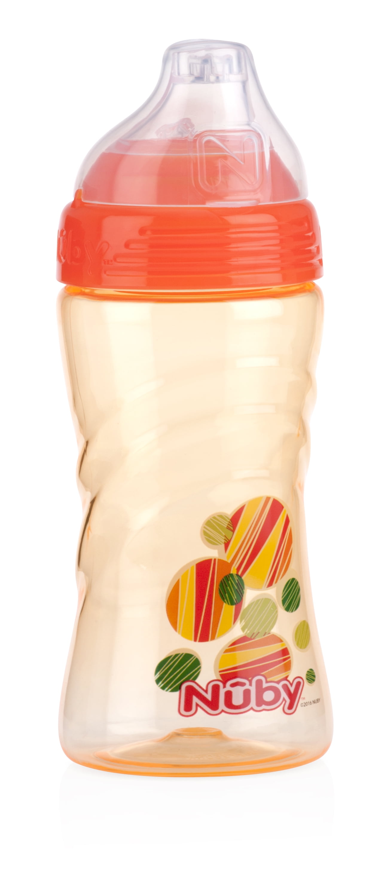 Nuby’s No-Spill Thirsty Kids cup is great for your active toddler. The soft silicone spout is uniquely designed to prevent drips and spills while being delicate and gentle to baby’s gums and emerging teeth. The pressure sensitive TOUCH-FLO feature regulates fluid intake with sucking action of child. When sucking action ceases, the spout closes, ensuring a leak-resistant cup. The cup is made from break-resistant plastic which is BPA FREE.Nuby 12oz Sip It Soft Spout Thirsty Kids, Style May Vary