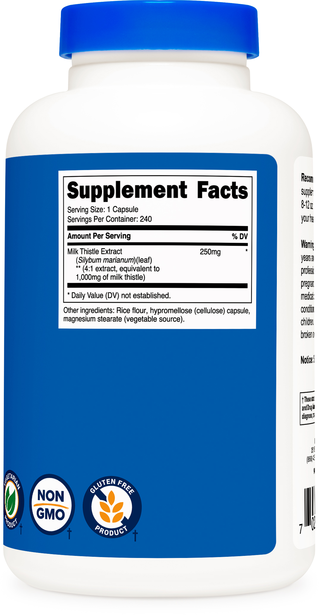 Nutricost Milk Thistle 250mg; 240 Capsules – Gluten Free, Non-GMO Supplement
