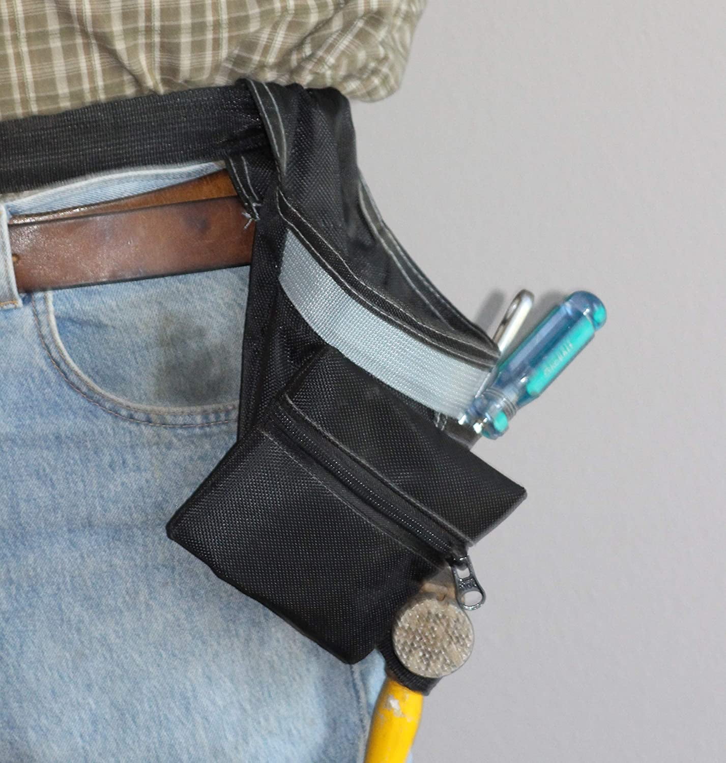 - Secure: the zippered pocket of our tool belt pouch stops nuts and bolts from falling out