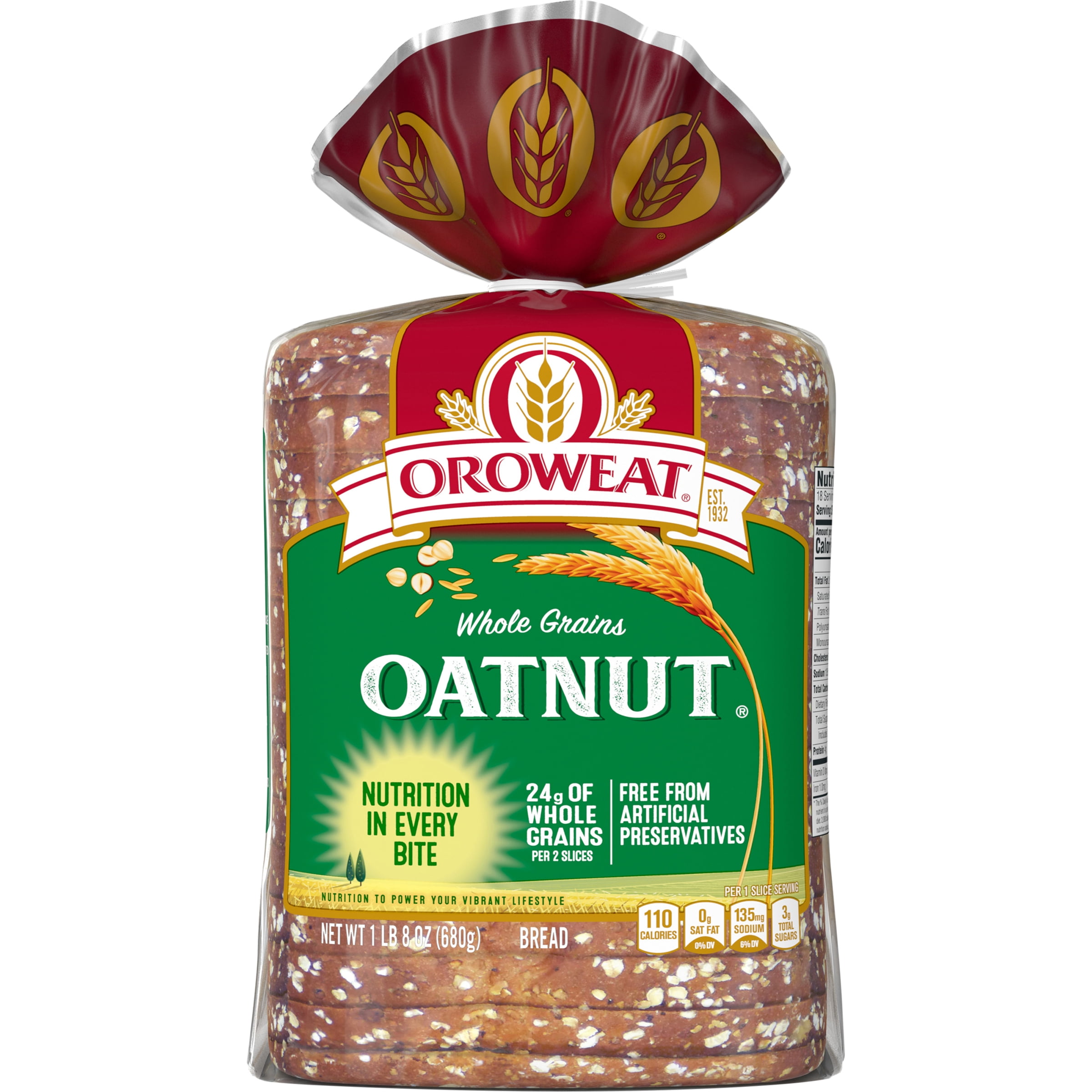 Oroweat Whole Grains Oatnut bread is baked with the goodness of grains making it a simple choice that supports your goal of living a balanced life! Since 1932, every Oroweat loaf is baked with the finest ingredients and care from our bakers to provide the taste people love with the nutrition they feel good about. Oroweat Oatnut bread is filled with a delicious blend of oats, sunflower seeds, and real hazelnuts giving you a rich, nutritional flavor. Oroweat bread has no high fructose corn syrup and no artificial preservatives, colors, or flavors with No added nonsense.