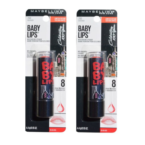 Pack of 2 Maybelline Baby Lips Moisturizing Lip Balm, Ra-Ra Red 200