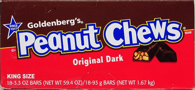 Silence your cravings with Peanut Chews Original Bar. This timeless munchable has been a favorite straight out of Philly since 1917. It’s a satisfying snack featuring rich dark chocolate, sweet molasses and crunchy roasted peanuts, all combined into a chewy bar. With about 4 grams of protein per serving, this treat will fill you up and keep you going throughout the day. It’s also a yummy way to treat yourself and celebrate life’s little victories. This king size pack of Goldenberg’s Peanut Chews contains eight bite-size pieces, so it’s just right for splurging or sharing. Try all the other varieties, including Chew-Ets, milk chocolate and more (each sold separately).