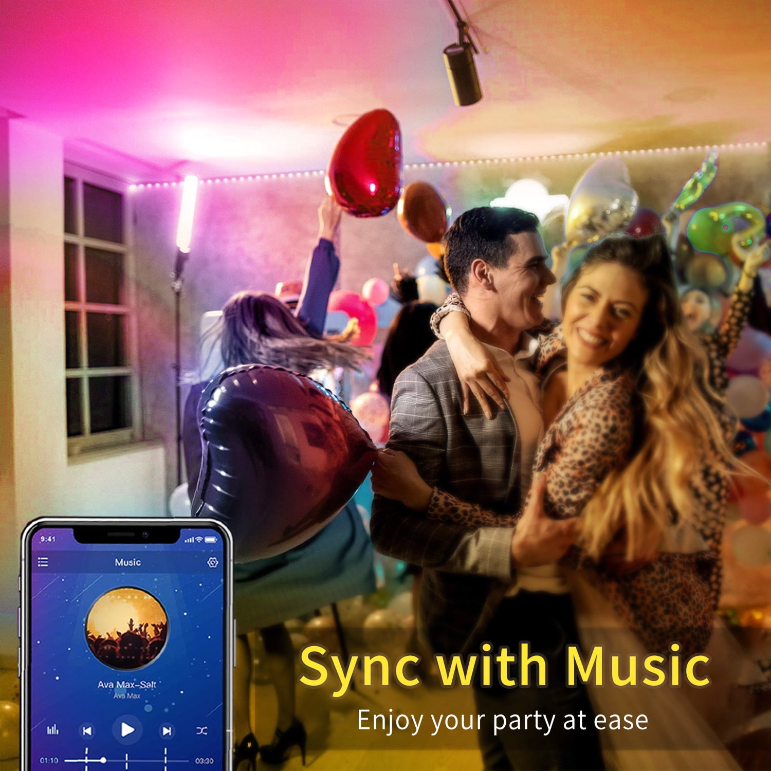 50 ft(2 rolls of 25 ft) led lights support Bluetooth APP and remote control. Just a touch of your finger, wonderful atmosphere you like will be created by multi colors. Especially when the color changing sync with music at the party, which is definitely a perfect experience.It’s difficult to install?Very sure to tell you, not at all. Just need to clean up the place you want to stick, peel 3M adhesive on the back of led lights and then you can paste it on.Under the timer function,you can wake up and enjoy nice lights in the morning. A happy day with good mood will be started.Quality after-sales service also let you buy at ease.If you have any questions, please feel free to contact us.We will provide you with satisfactory solution within 48 hours.