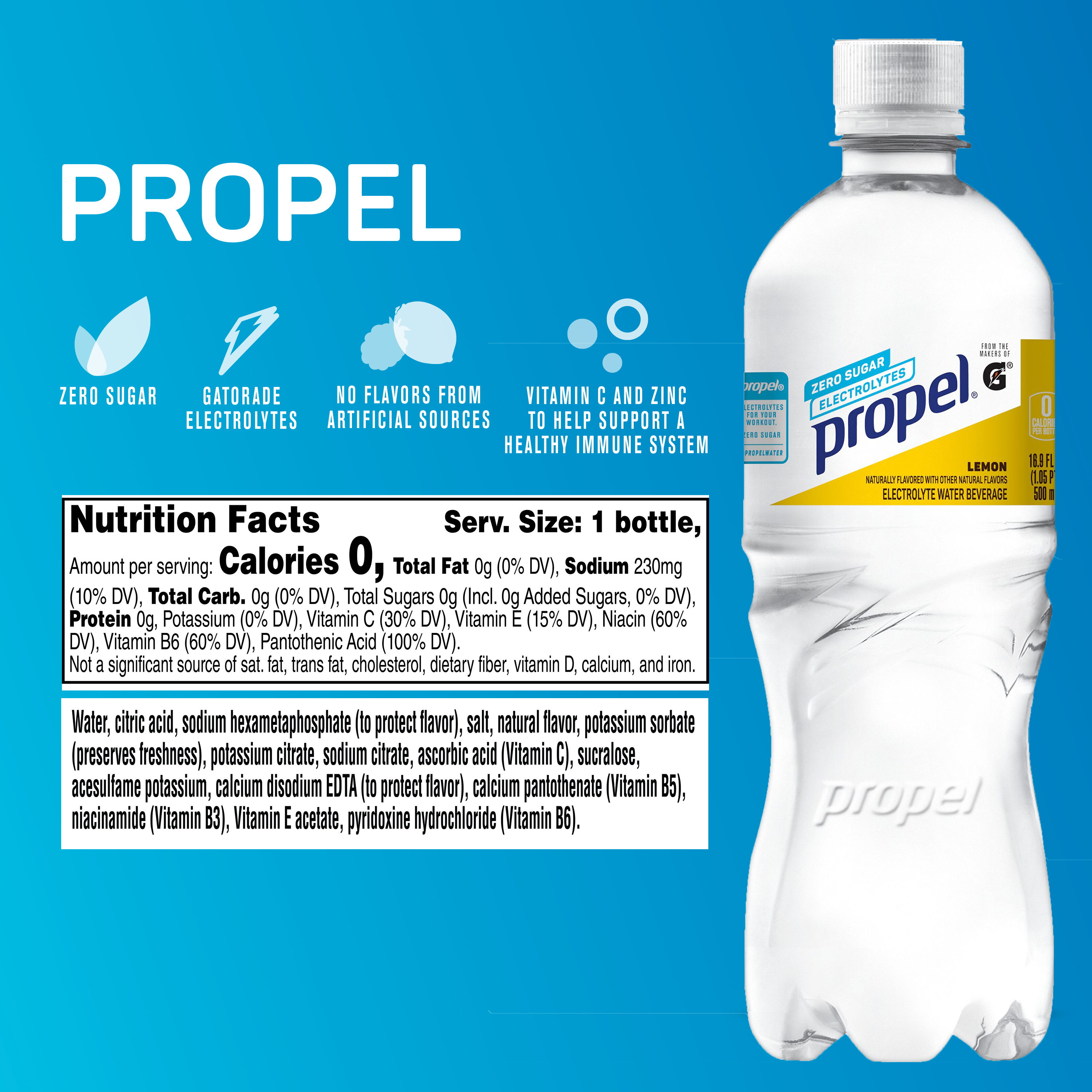 - Created by the makers of Gatorade, Propel is the only zero calorie, zero sugar electrolyte water beverage among national enhanced water brands with enough electrolytes to replace what is lost in sweat.