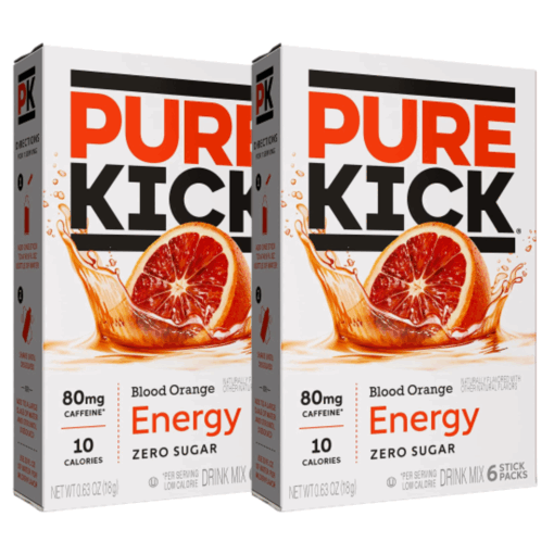 Pure Kick Blood Orange Singles To Go Energy Water Enhancer Drink Mix Zero Sugar Low Calorie Powder Stick Beverages 2 Boxes, 6 Stick Pack per Box – 12 Total Servings