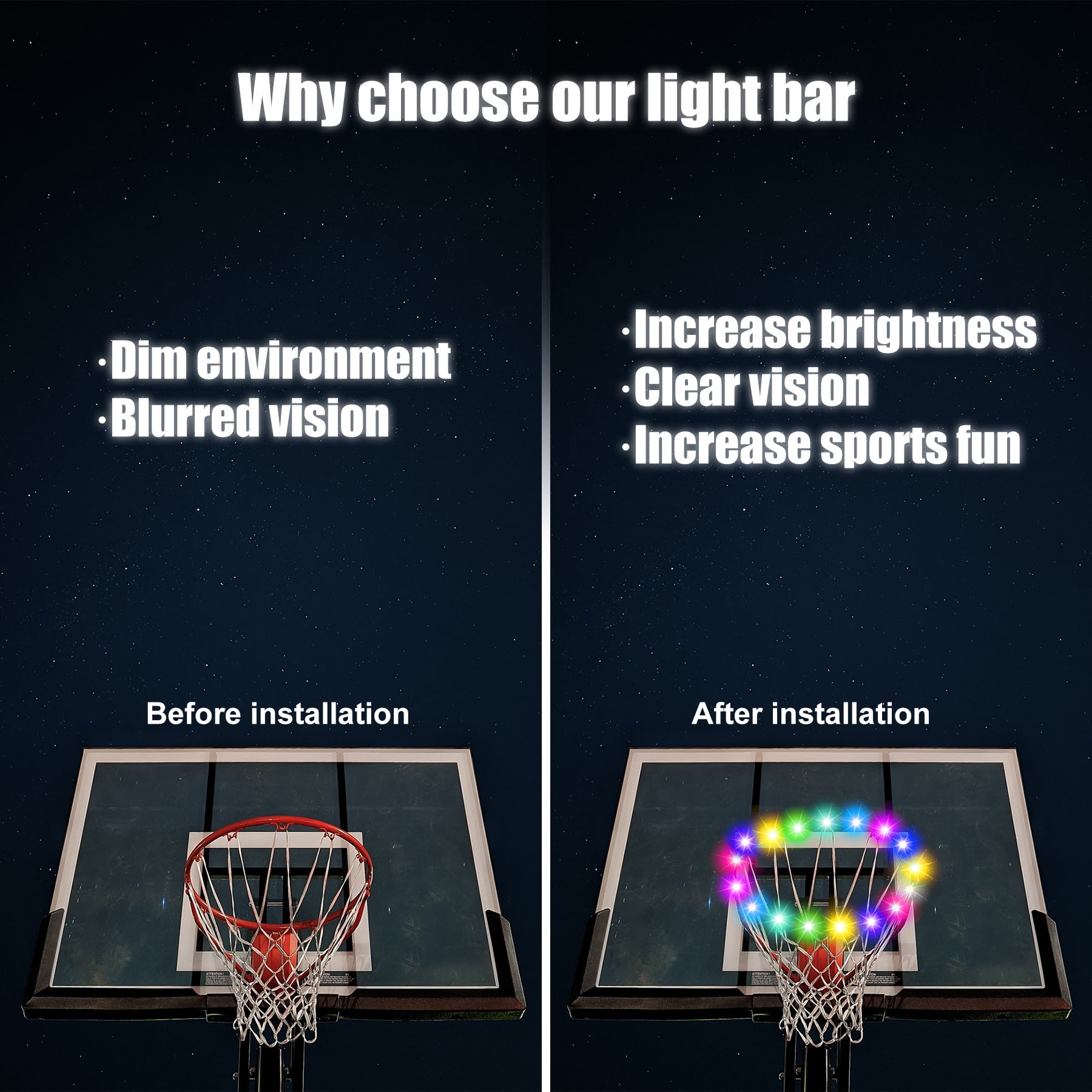 - Easy to Install and Use: Our basketball light strips are flexible and can be bent or shaped freely according to your needs, the 4.9ft long strip light is very suitable to surround the basketball hoop, Just use a small zipper to fix the LED lights along the basketball hoop and fasten the headlights with zip to the main pole, and then the battery box is glued with 3M tape (included), and the remote control is used to control the use, and the control distance is up to 16 ft.
