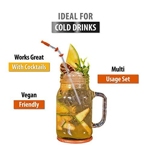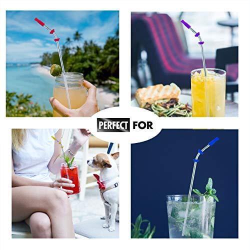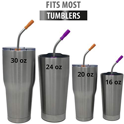 Reusable Straws Stainless Steel Straws -(10 Pack) with Silicone Tips, Cleaning Brushes and Storage Pouch – 10.5, 8.5 inch Reuse Straight and Curved Drinking Straws Metal Straw Fits Yeti, T