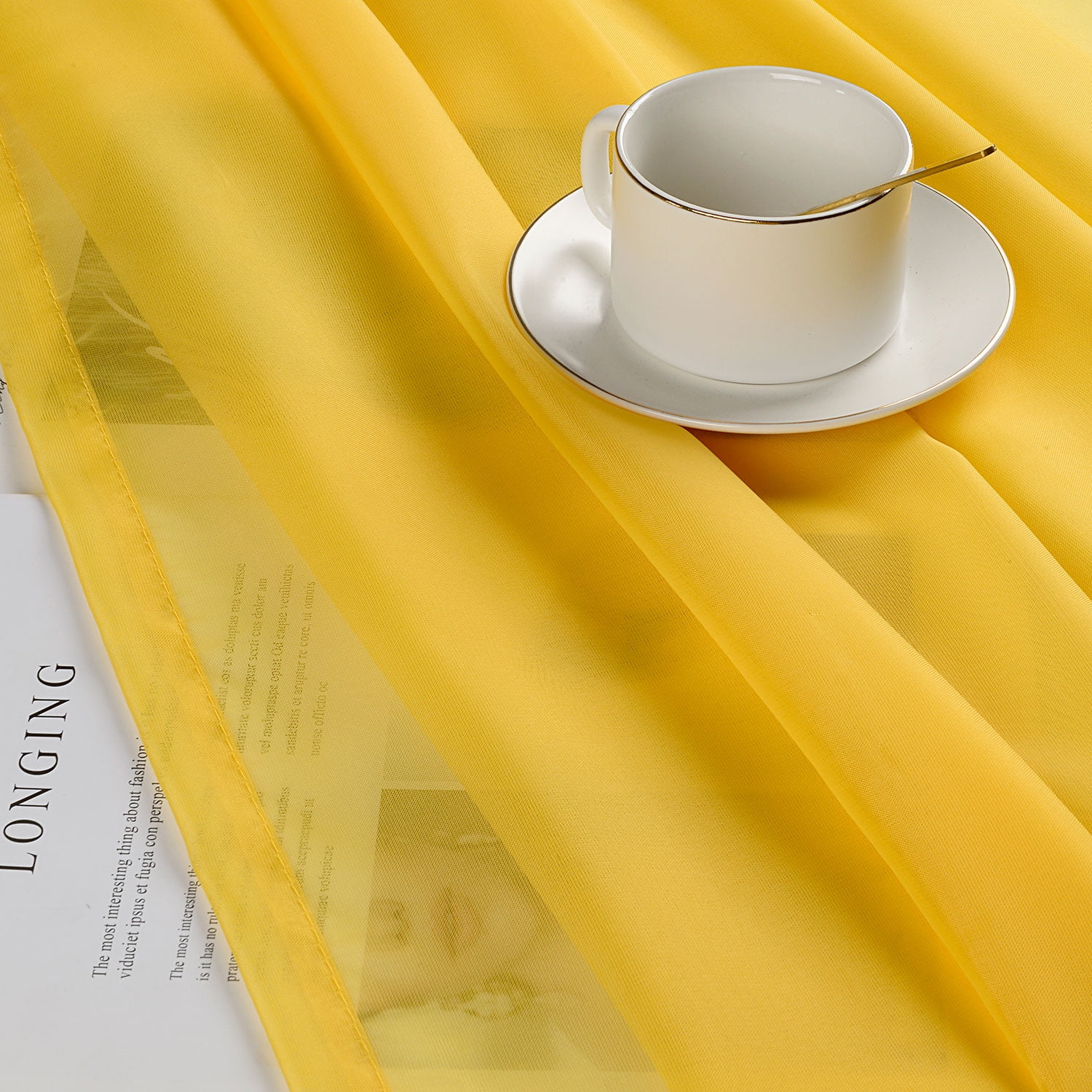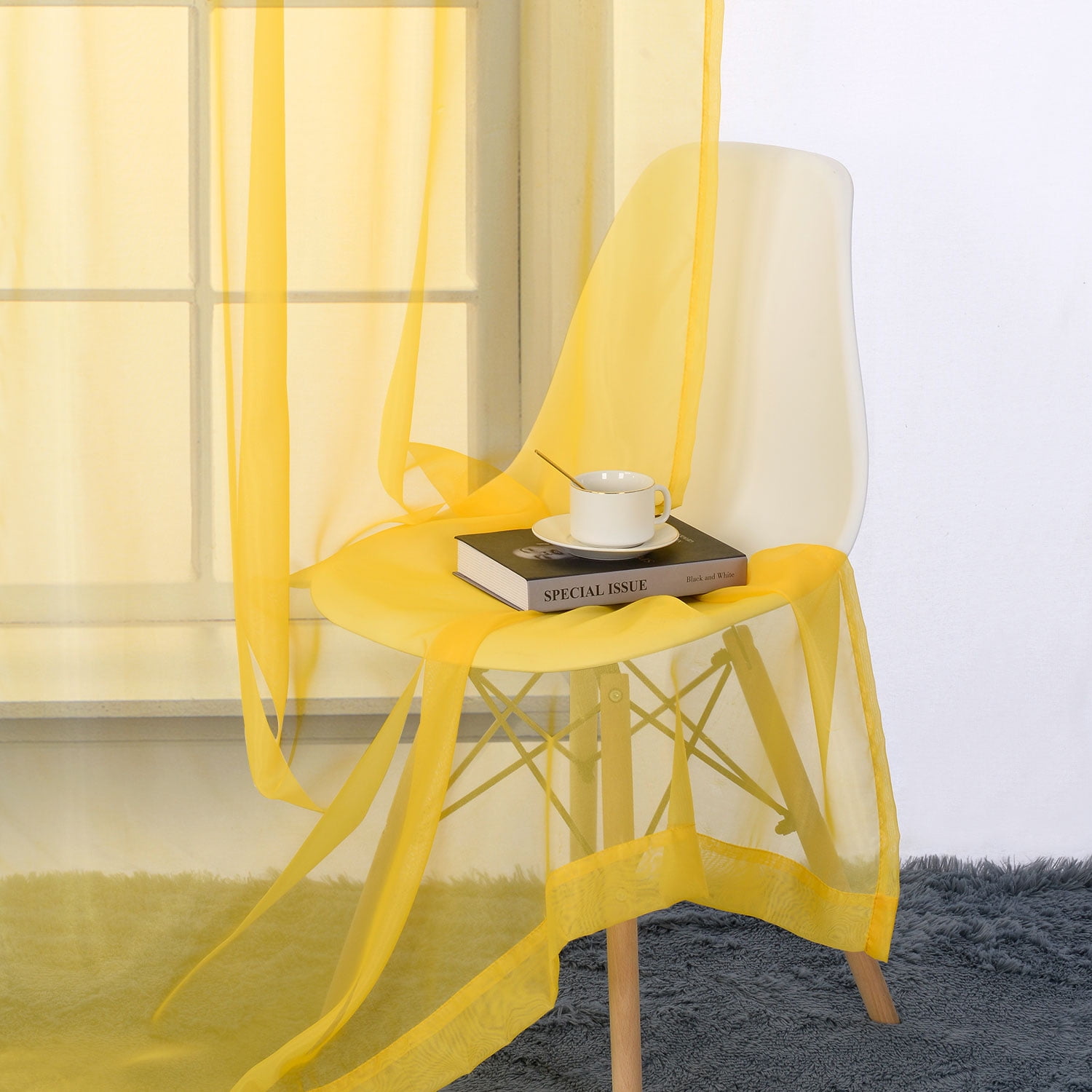 Ruthy’s Textile Yellow Sheer Curtains Set Window Panel Drape Pair 104′ X 84′ Inch for Kitchen Bedroom Children Living Room Yard