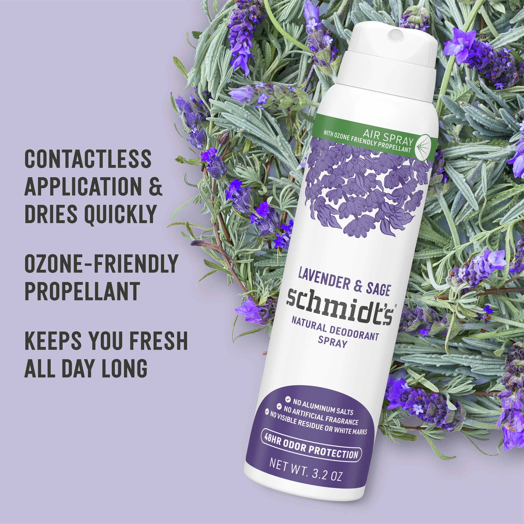 Schmidt’s Natural Deodorant Spray for Women and Men, Lavender & Sage with 48H Odor Protection, No Aluminum Salts, No White Marks, Cruelty Free, Vegan Deodorant 3.2 OZ