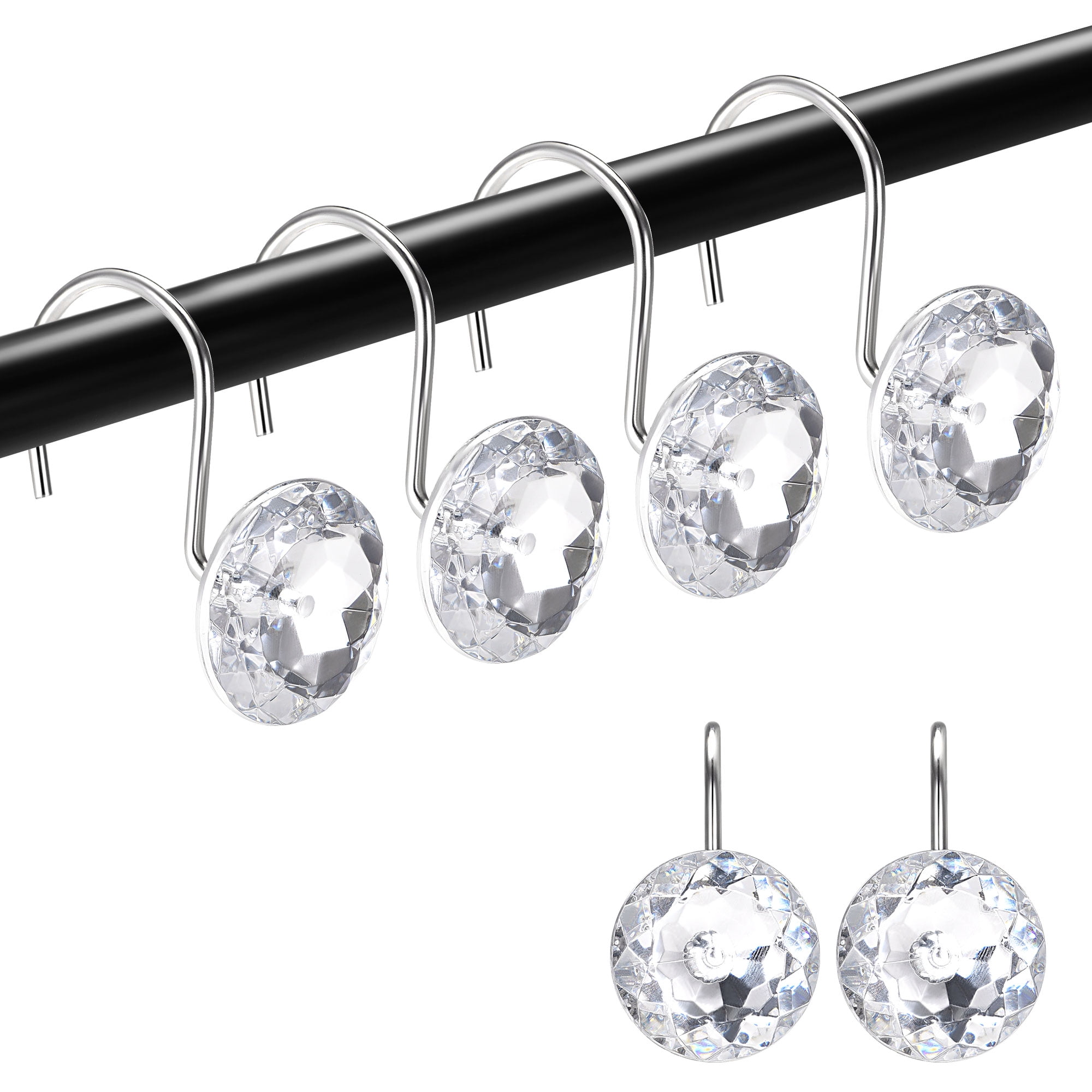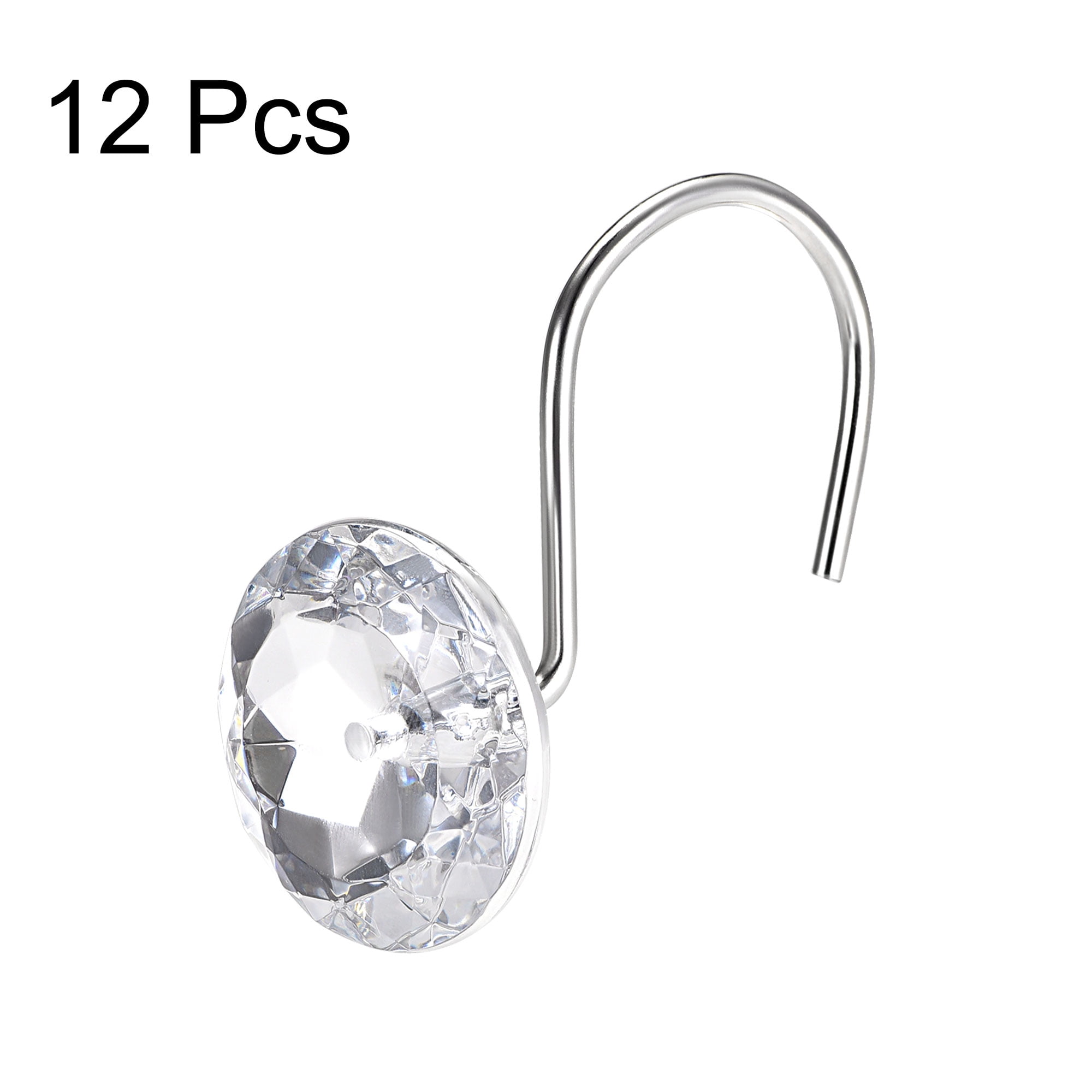 Shower Curtain Hooks for Bathroom , Home Decorative Acrylic Hook Rings, Curtain Rod Hangers Transparent 12 Pack