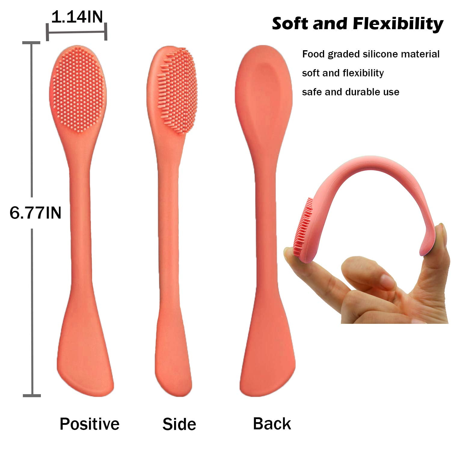 Convenient Design: The silicone facial mud mask brush is designed with two different ends. The spoon-shaped end helps you take out the products used in the jar and apply them evenly and smoothly on your face. The other end is soft silicone bristles help massage the skin and promote absorption.