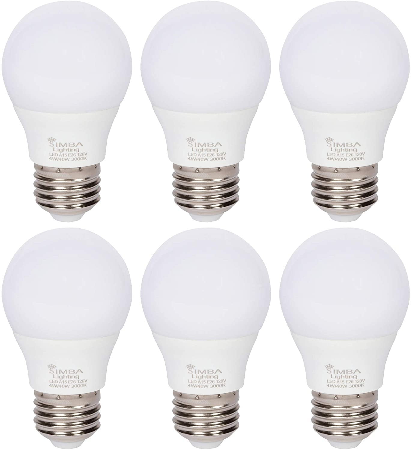 Simba Lighting LED A15 4W 40W Equivalent Small Bulbs 120V E26 3000K Soft White 6-Pack