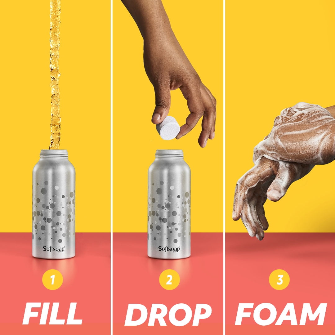 - FILL, DROP, FOAM: Softsoap Hand Soap Tablets are a convenient and easy way to refill your favorite foaming hand soap – just fill the pump with water, drop in a tablet and let is fizz
