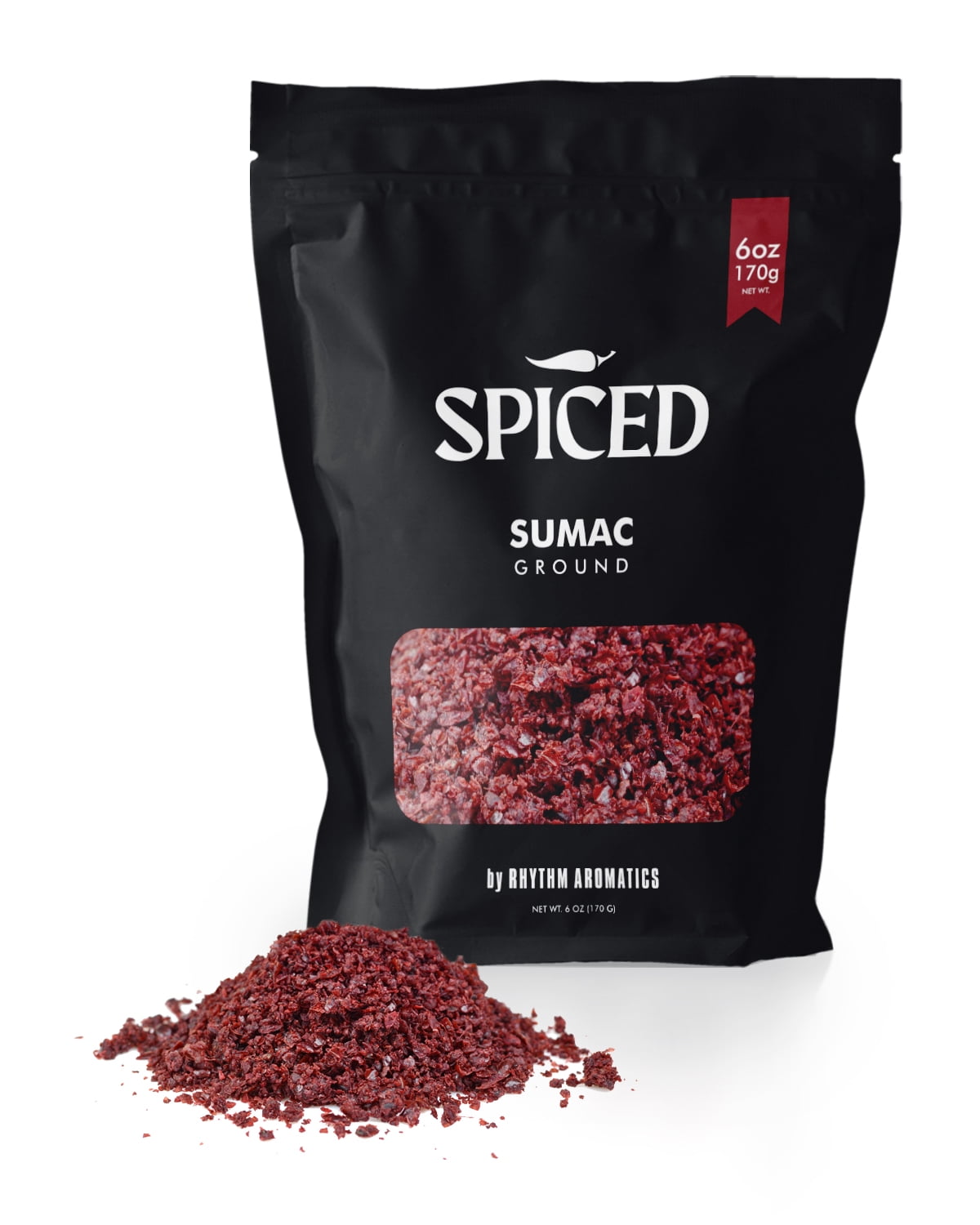 SPICED Ground Sumac, 6oz of Freshly Ground Sumac in Resealable Bag, Great for Spice Blends, Seasoning, Roasting, Marinade, Rubs, Grilled Meat, Salads, Creamy Dips and Fish