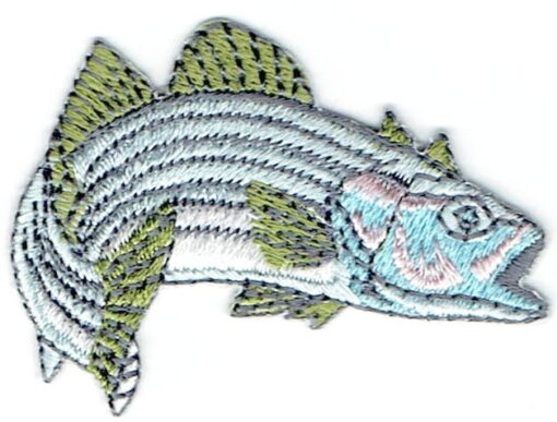 Stripe Bass – Facing Right – Fish – Fishing – Blue/Green – Iron on Embroidered Patch