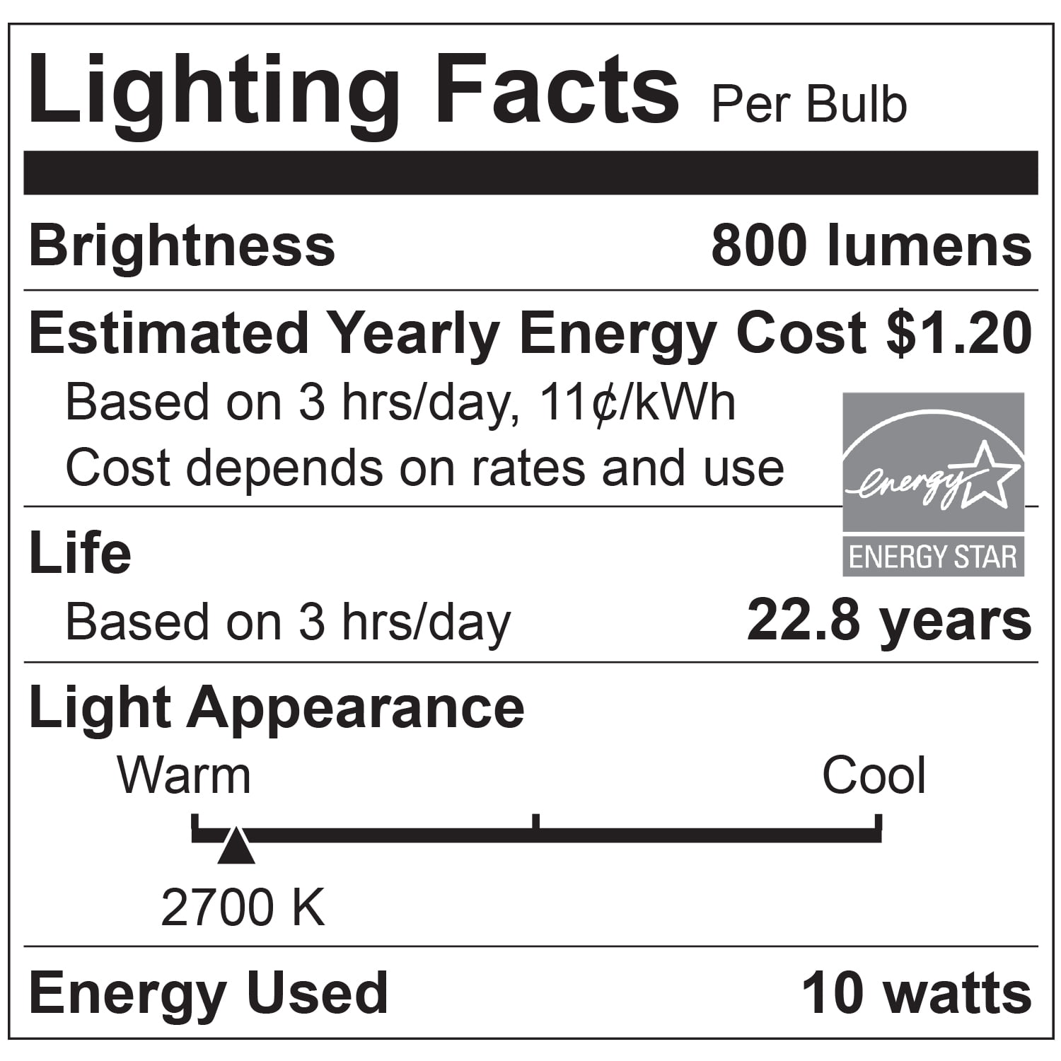 - SAVE ENERGY COSTS – The average operating cost of each bulb is $1.20 per year based on 3 hours of use per day at a cost of 11 cents/kWh. These Energy Star Certified LED bulbs are also eligible state and local rebate programs for both residential and commercial installations.