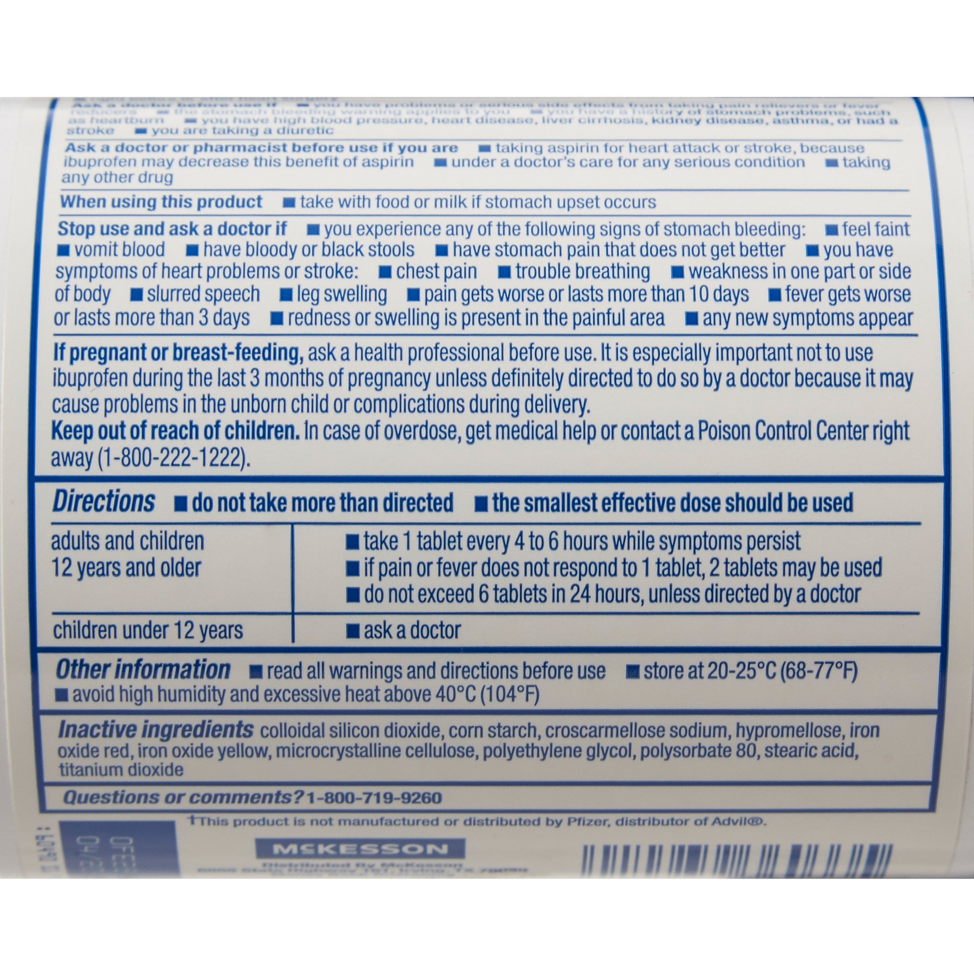 Temporarily relieves minor aches and pains due to: headache, muscular aches, minor pain of arthritis, toothache, backache, the common cold, menstrual cramps; temporarily reduces fever.Temporarily relieves minor aches and pains due to: headache, muscular aches, minor pain of arthritis, toothache, backache, the common cold, menstrual cramps; temporarily reduces fever.Active Ingredients: Each Tablet: Ibuprofen 200 mg (NSAID) (Nonsteroidal Anti-Inflammatory Drug)Inactive Ingredients: Colloidal Silicon Dioxide; Corn Starch; Croscarmellose Sodium; Hypromellose; Iron Oxides; Microcrystalline Cellulose; Stearic Acid; Titanium Dioxide