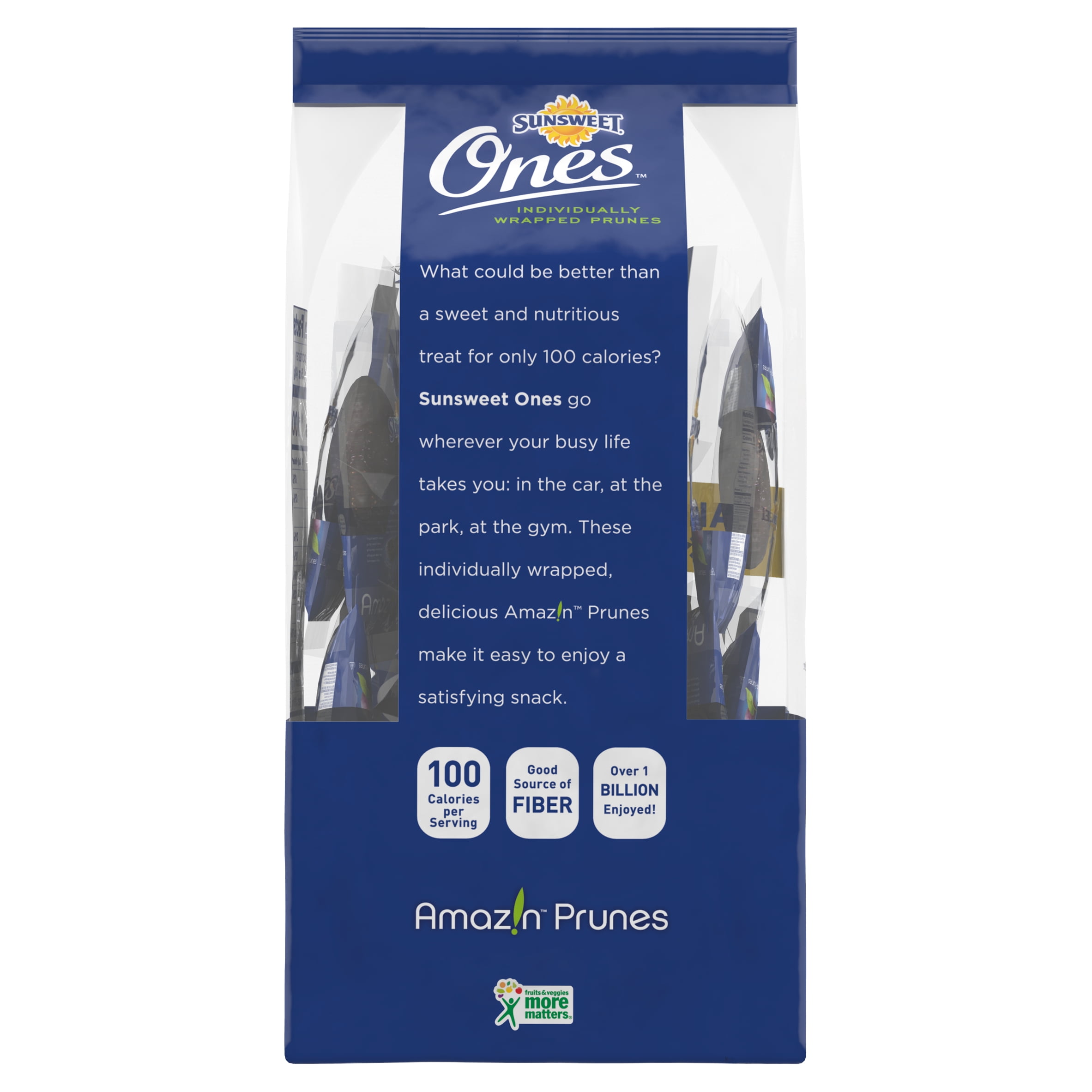 Satisfy your snack cravings in a healthy way with these Sunsweet Ones Prunes. Each prune is individually wrapped, making them a perfectly portable, no mess snack. Take them anywhere you go, whether to work, the gym, your hike or more. Sunsweet Ones Prunes are a naturally energizing good source of fiber, so they promote digestive health and keep you feeling full. Take some Ones with you today.