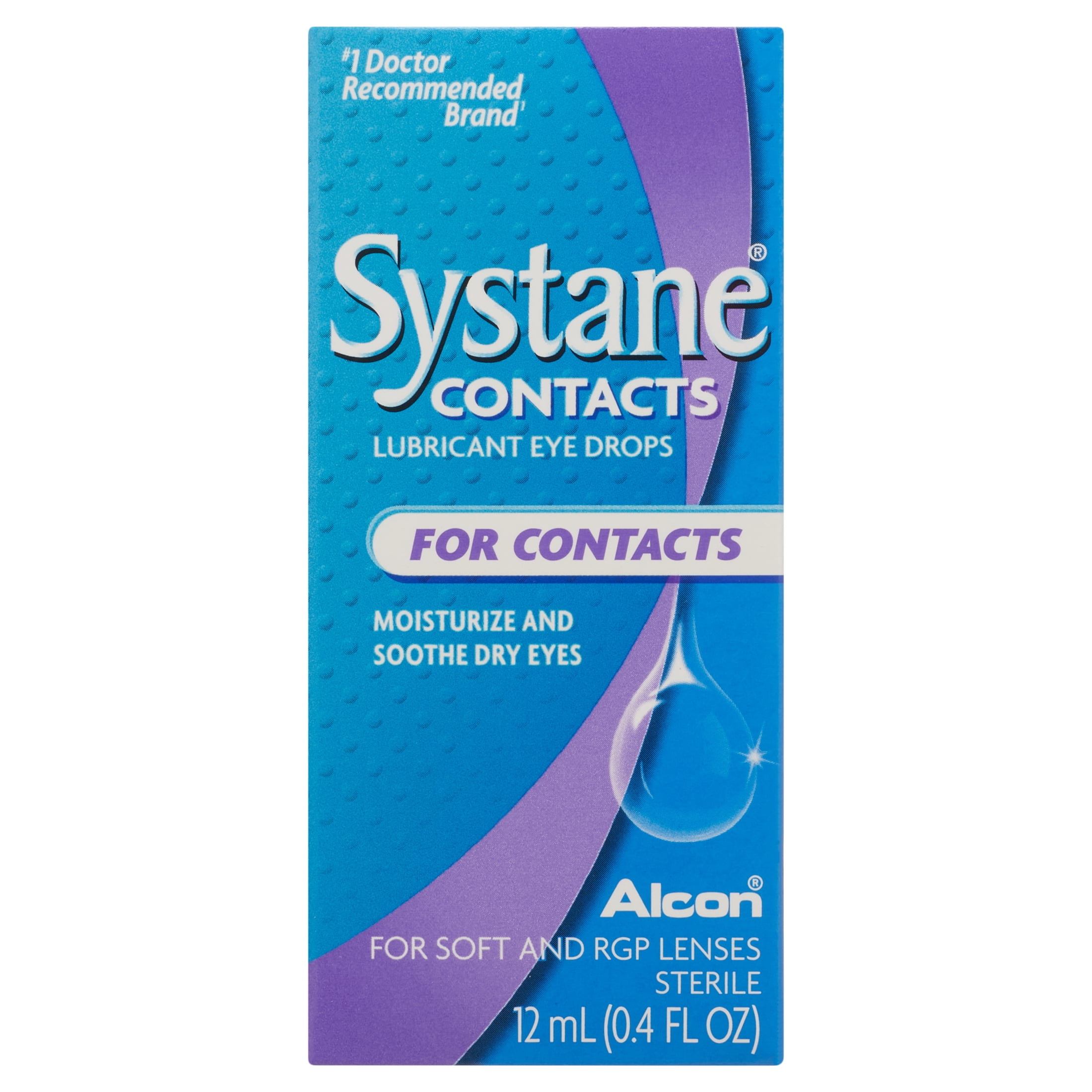 Get moisturizing relief with the Alcon Systane Contacts Lubricant Eye Drops, .4 oz. The moisturizing, eye-soothing formula in the drops is designed to refresh eyes, so you can see comfortably and more clearly. Made with two active ingredients that are lubricating agents, the Systane Contacts Eye Drops offers double moisture, giving you long-lasting comfort. In addition, these sterile eye drops moisturize and soothe dry and irritated eyes that can caused by wearing soft and rigid gas permeable lenses. If you spend most of your day on the computer, you can also use this lubricating eye drop formula to refresh strained eyes. These energizing Systane eye drops also relieve uncomfortable dryness and itchiness associated with daily contact use. Made with an antihistamine, these eye drops give you soothing eye comfort, even for those with allergies. The eye drops are completely sterile, offering you safe relief from contact irritation.