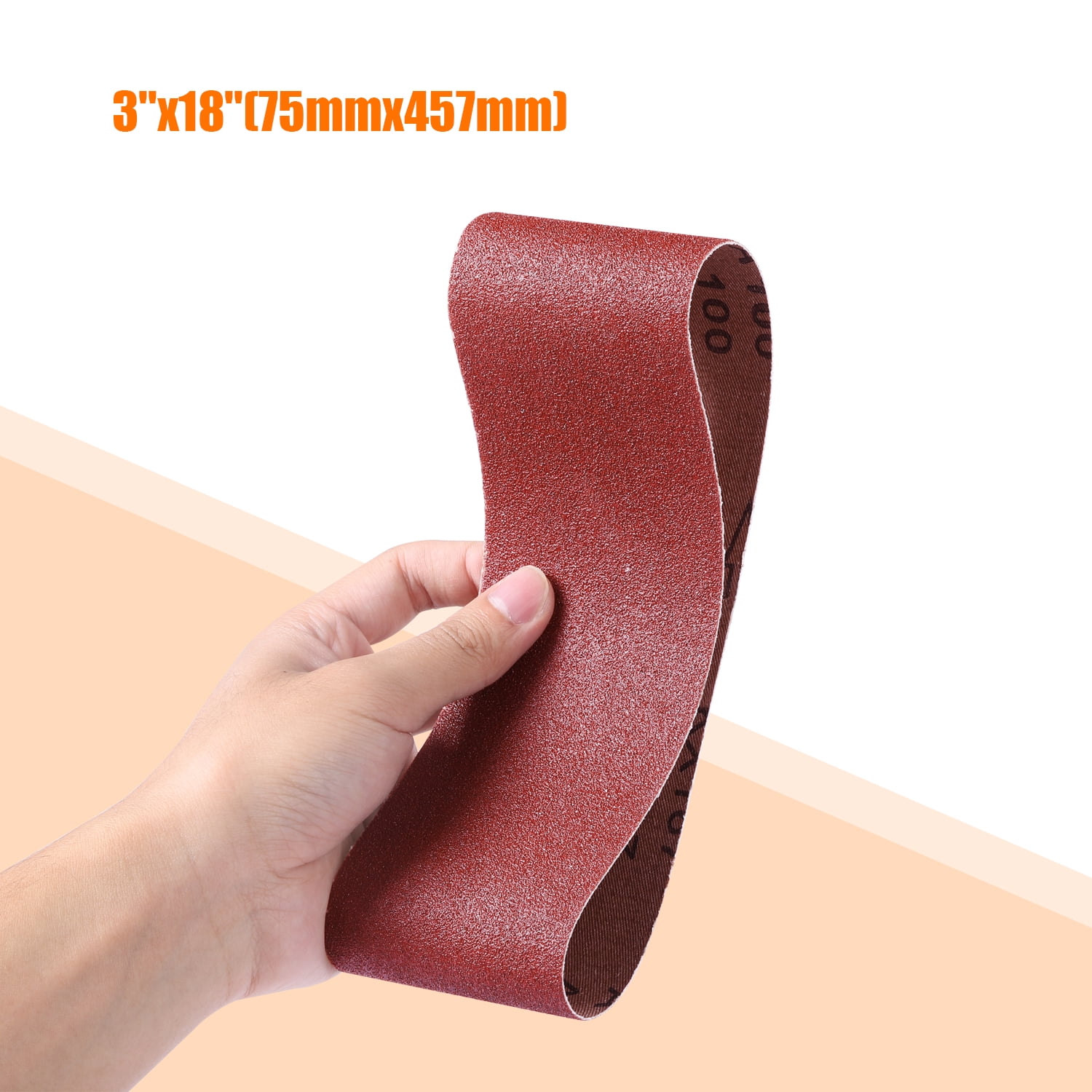 - 3X18 Inch & 10 PACK – 10 pcs 3X18” abrasive belts (2 X 40 grits, 2 X 60 grits, 2 X 80 grits, 2 X 100grits, 2 X120 grits), meeting your requirements for different materials and applications.
