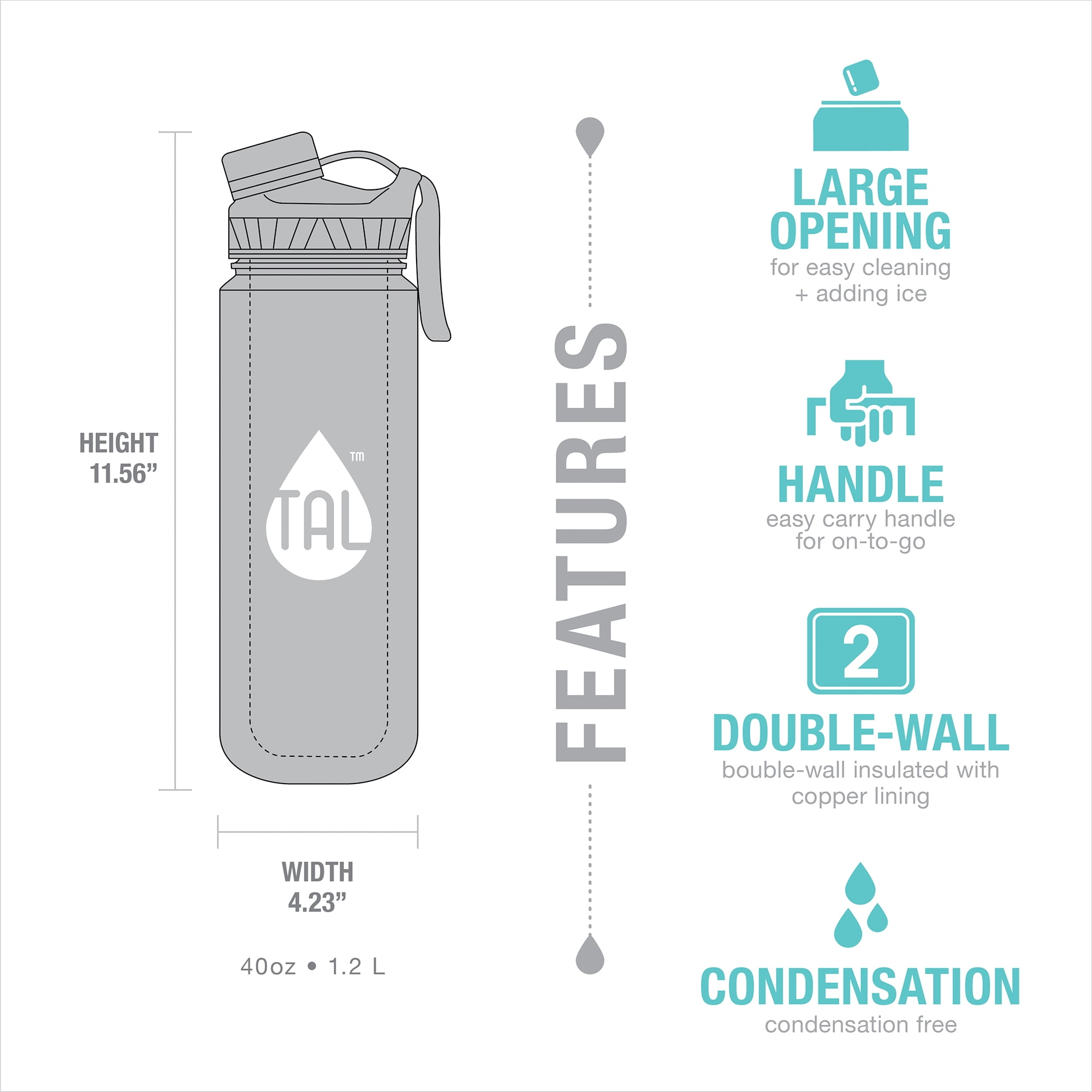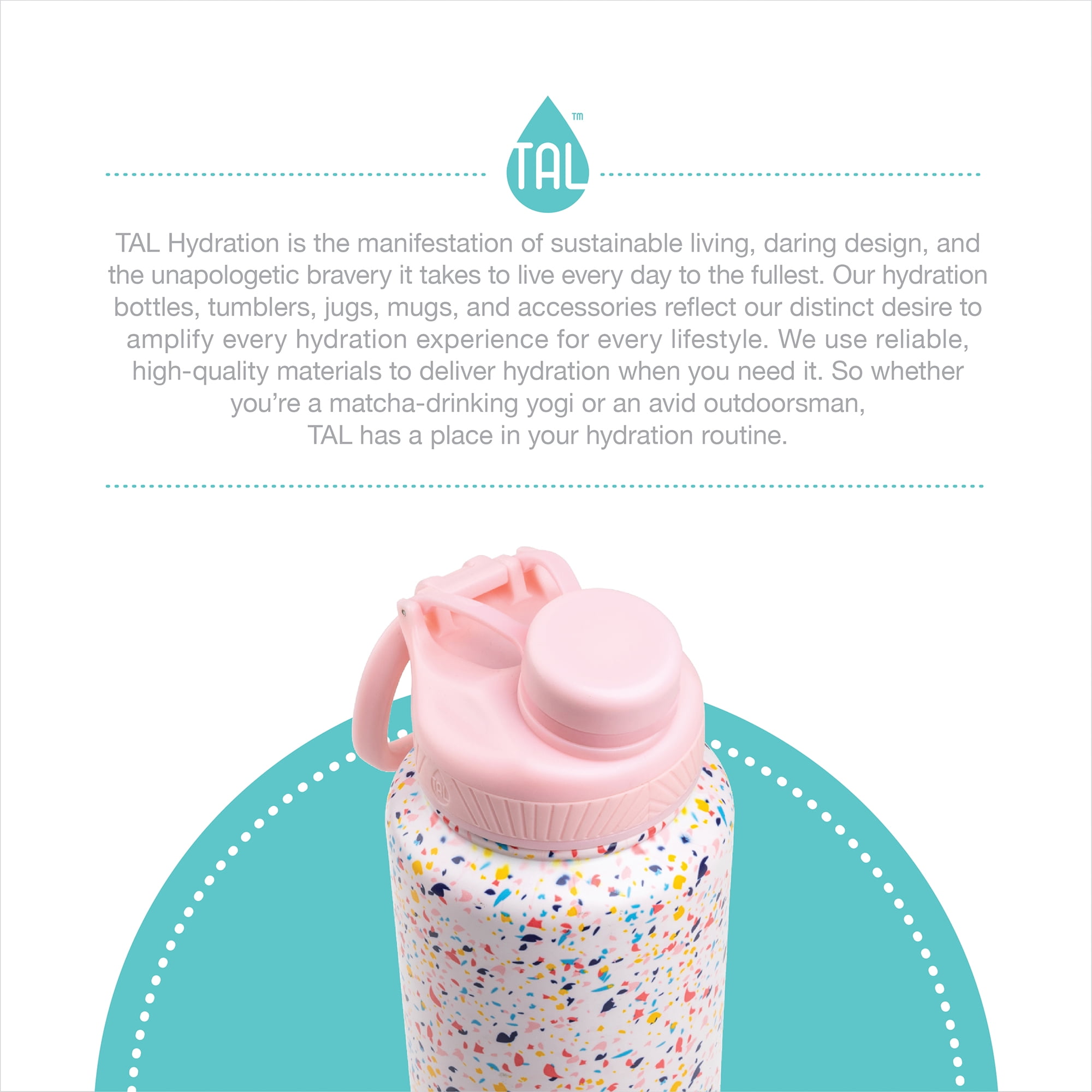 Product Info: Meant for outdoor adventures, the Ranger Pro is equipped with a screw-on cap to ensure spill prevention and a flip-up ergonomic carry handle so it can go anywhere you do. Double-wall insulated stainless steel makes for maximum temperature retention, perfect for the gym and all of your everyday activities. The lid is top-rack dishwasher safe. Painted stainless steel vessel hand wash only, no abrasives. Not freezer or microwave safe. Not intended for carbonated beverages. Always use caution when handling hot liquids. About TAL Hydration: Hydration is the manifestation of sustainable living, daring design, and the unapologetic bravery it takes to live every day to the fullest. Our hydration bottles, tumblers, jugs, mugs, and accessories reflect our distinct desire to amplify every hydration experience for every lifestyle. We use reliable high-quality materials to deliver hydration when you need it. So whether you’re a match-drinking yogi or an avid outdoorsman, TAL has a place in your hydration routine.