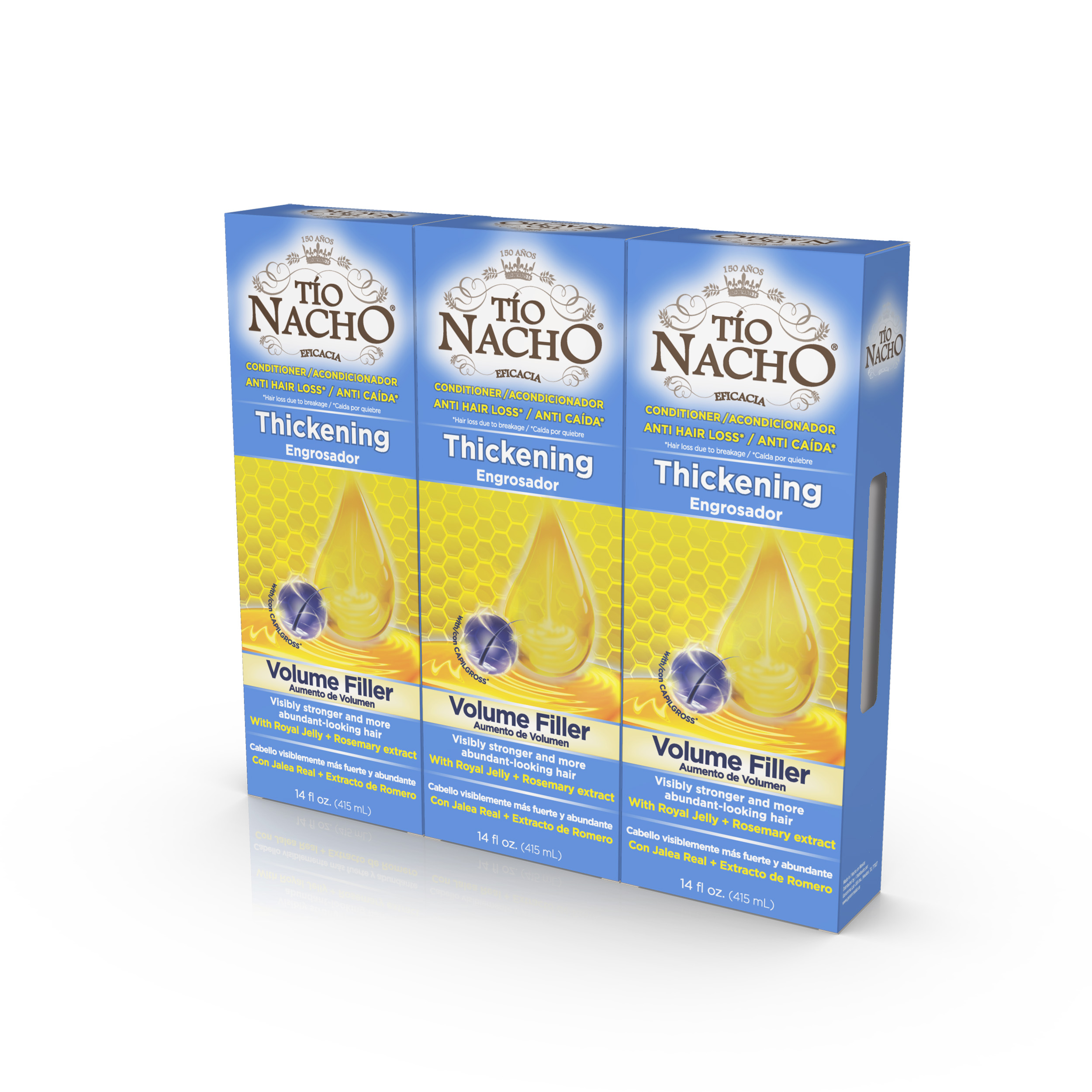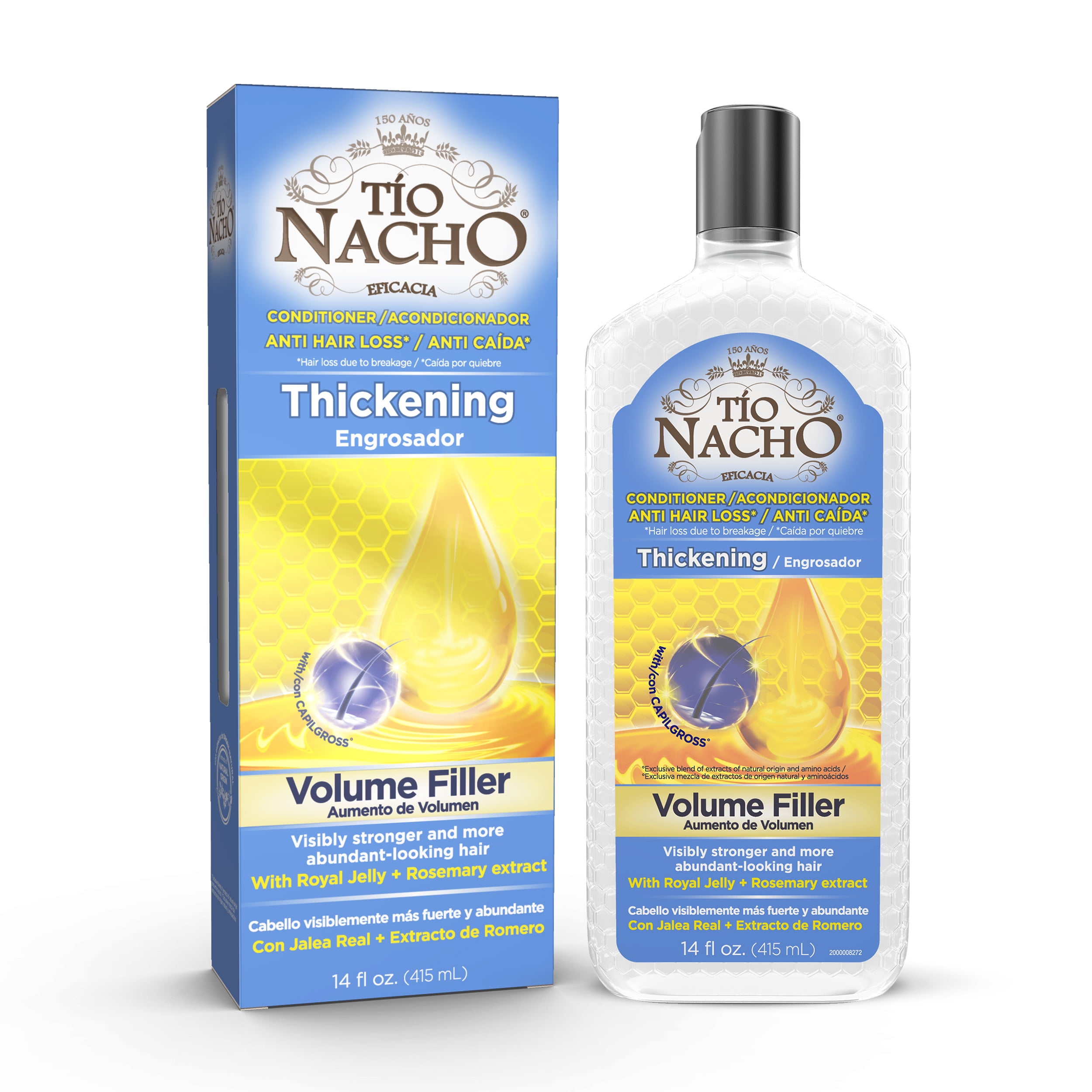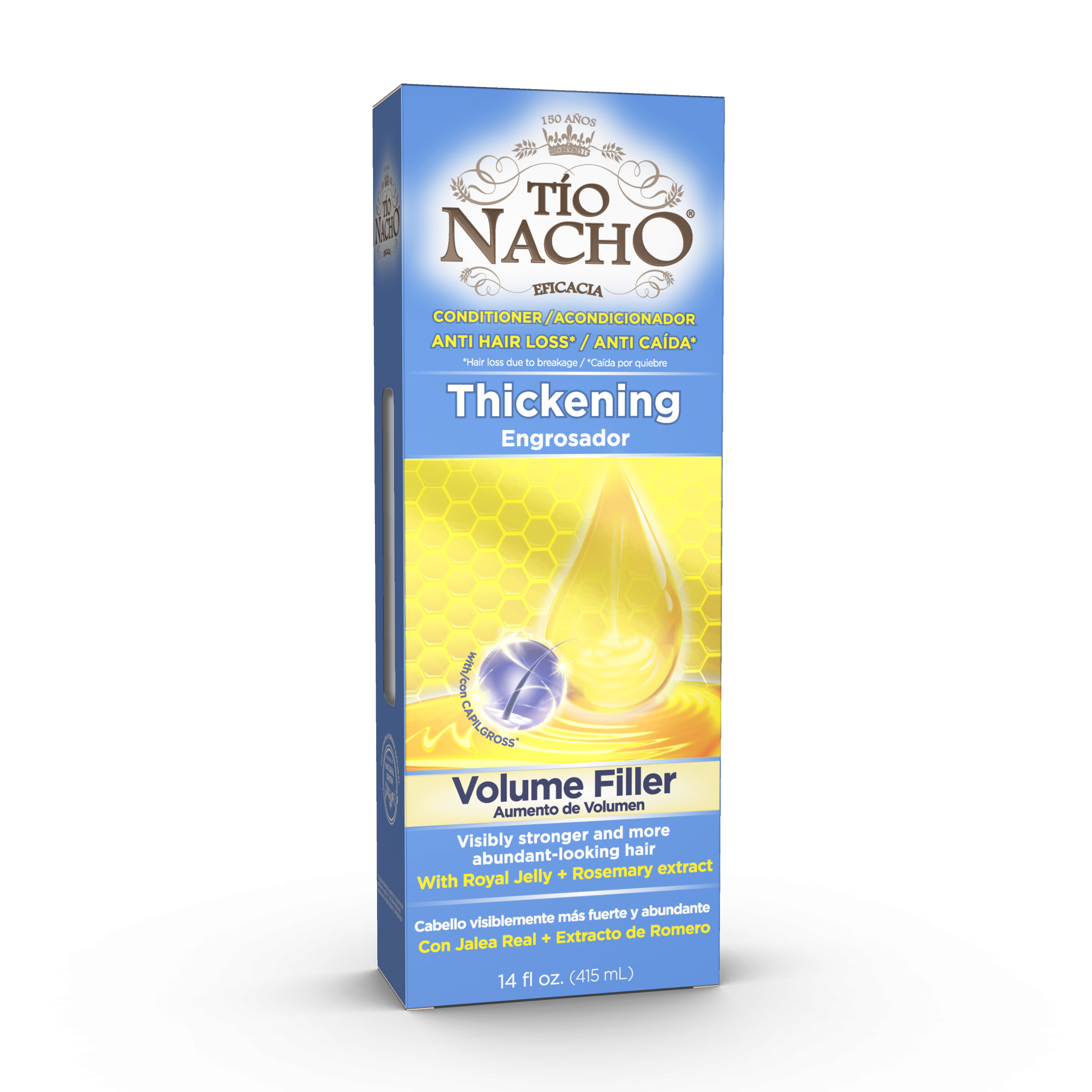 Tio Nacho Thickening Volume Filler Conditioner formula includes ingredients of natural origin and royal jelly that enhance all hair types’ beauty. Tio Nacho created Thickening Conditioner for visibly stronger and more abundant-looking hair. It is formulated with Capilgross° and a combination of royal jelly and extracts of natural origin such as Hop (to help thicken the hair fiber), Rosemary (to help add volume to the hair), and Nettle extract (to help strengthen hair). For better results, use it with Tio Nacho Thickening Shampoo & Treatment.