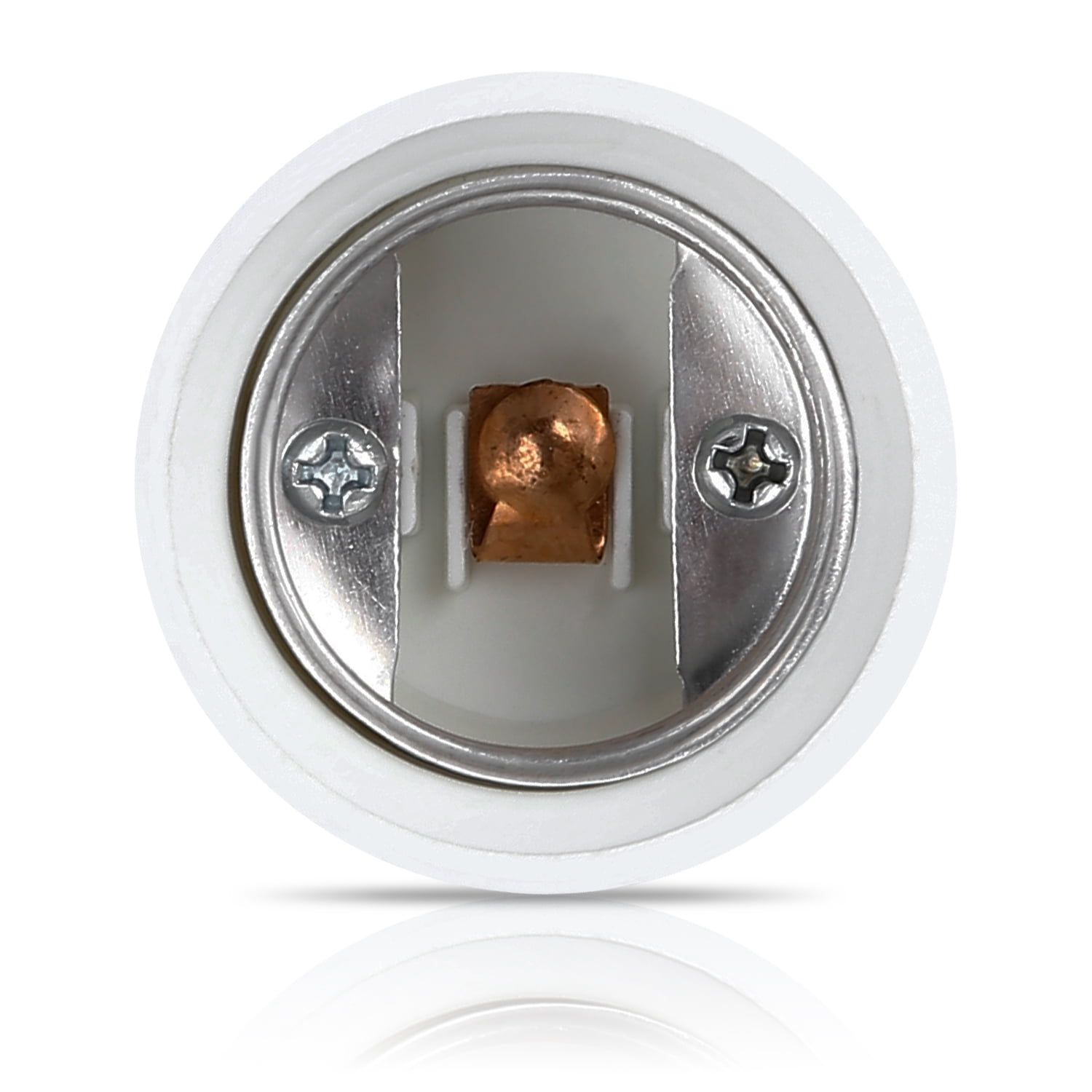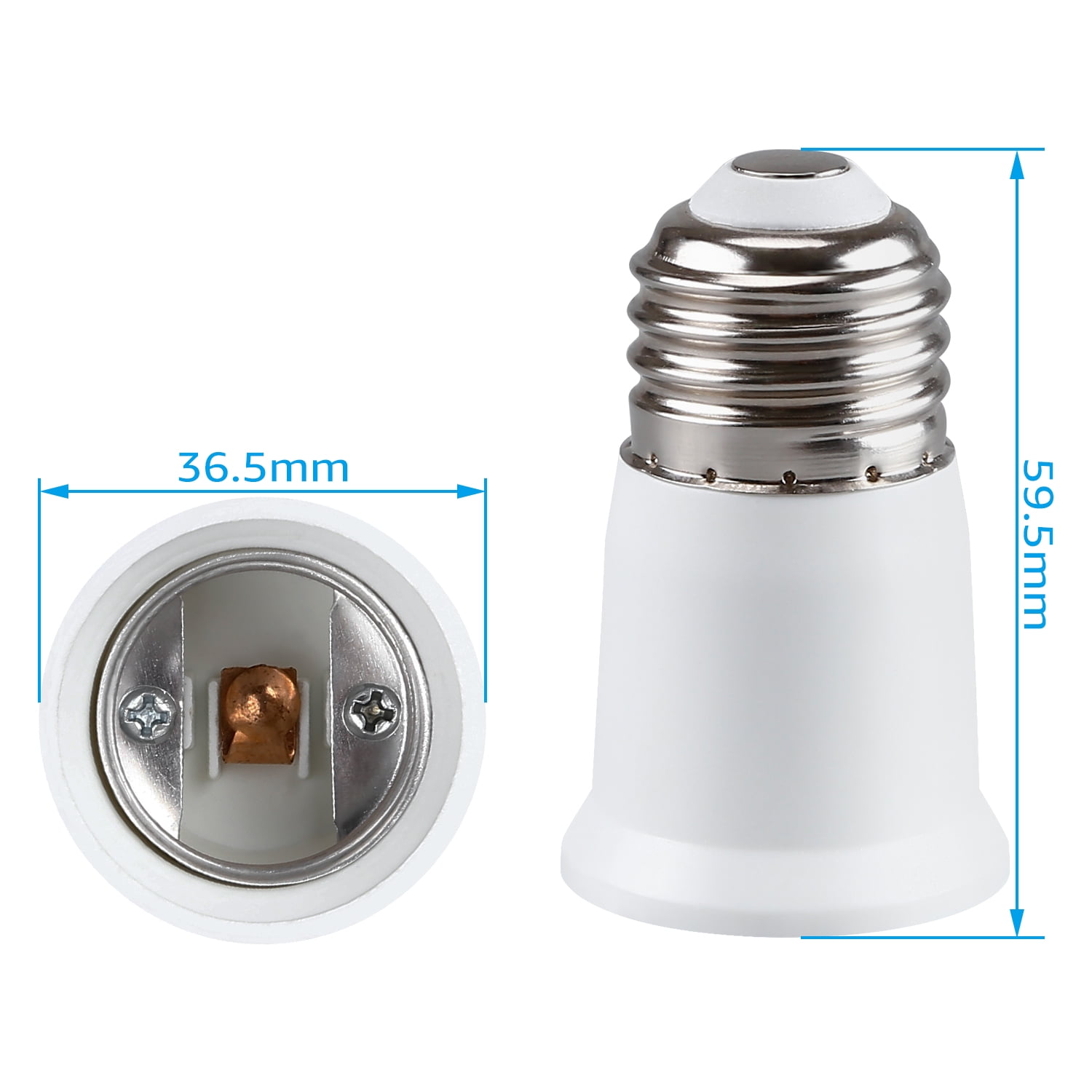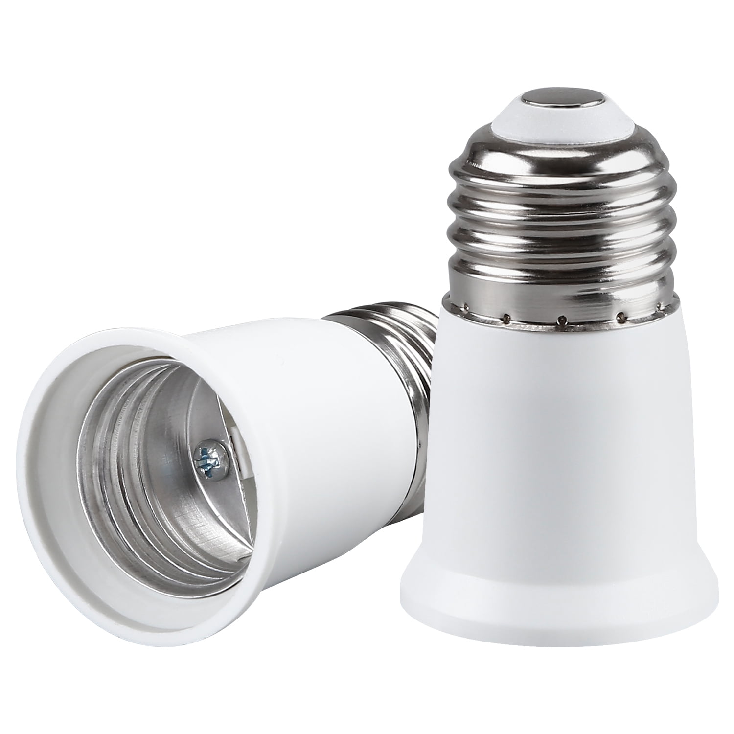 For E26 base bulbs that can’t screw all the way into your existing socket, this E26 to E26 extender is your solution. It fits standard E26 base sockets and extends your bulb’s base by 1.5 inches. It’s perfect for bulbs with wide bases that need a little more room. It also adds another 1.25inches to your bulb’s length, making them great for use in recessed spot lights. The high-quality thermoplastic polymer (PBT) and copper material give it anti-burning properties and erosion-resistance. This prevents fires caused by overheating lamp holders. The professionally manufactured metal contact grants stable conductivity and outstanding performance. The small size and lightweight mean you can just screw a standard base E26 bulb into this adapter, then screw the adapter into any E26 socket. The E26 to E26 base extender works with many different voltages like 110V-120V, and 220V-240V.