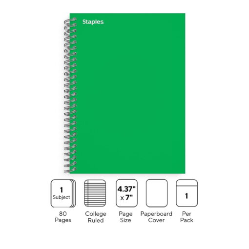 TRU RED Prem 1-Subject Notebook 4.38’x7′ College 80 Sheets Reissue Green TR58350M