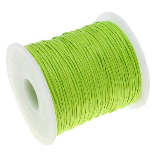 Lightweight, non sticky, strong braided round lightly waxed cotton cord.ITEM: Waxed Cotton CordCOLOR: LimeQUANTITY: 90-100 metersSIZE: 1mm