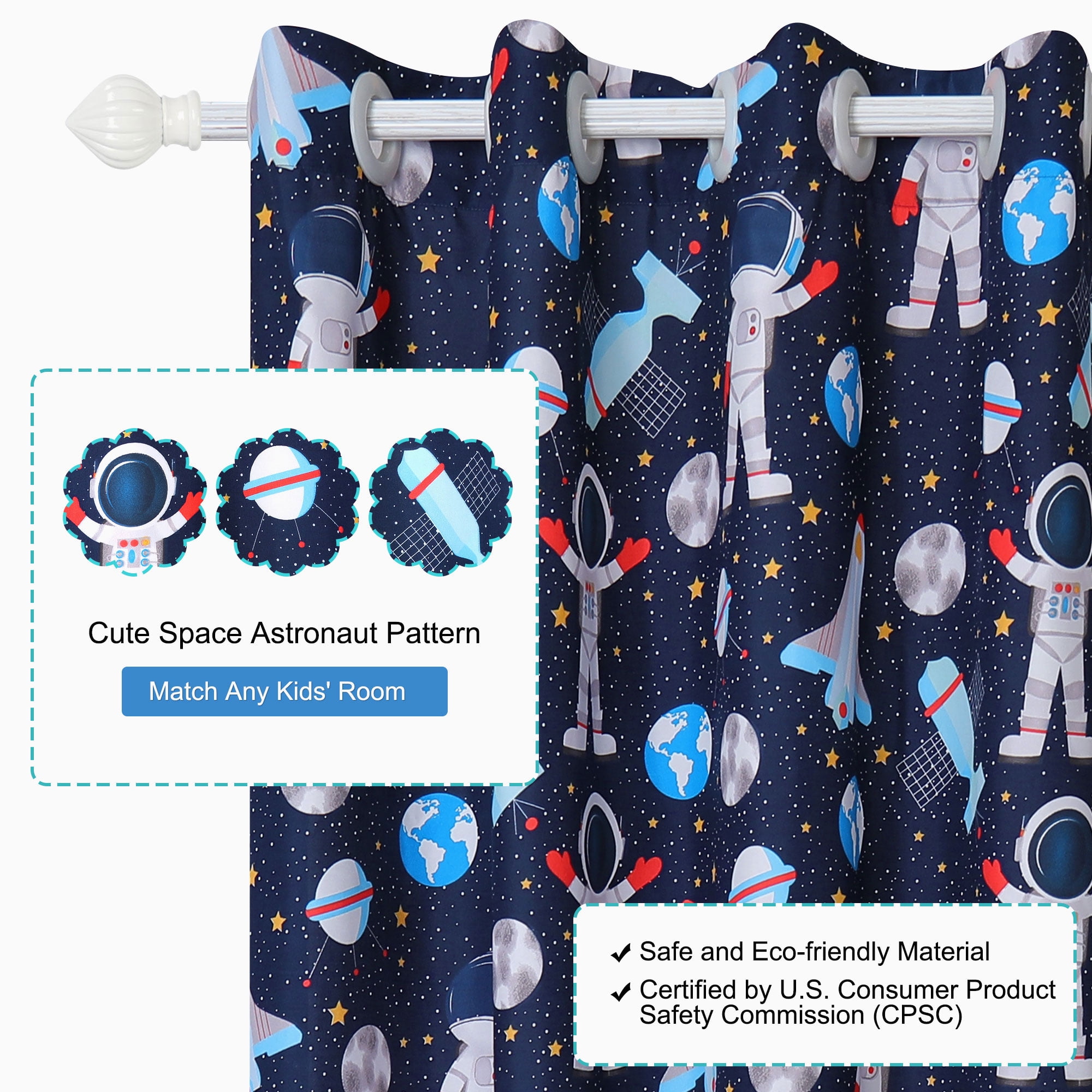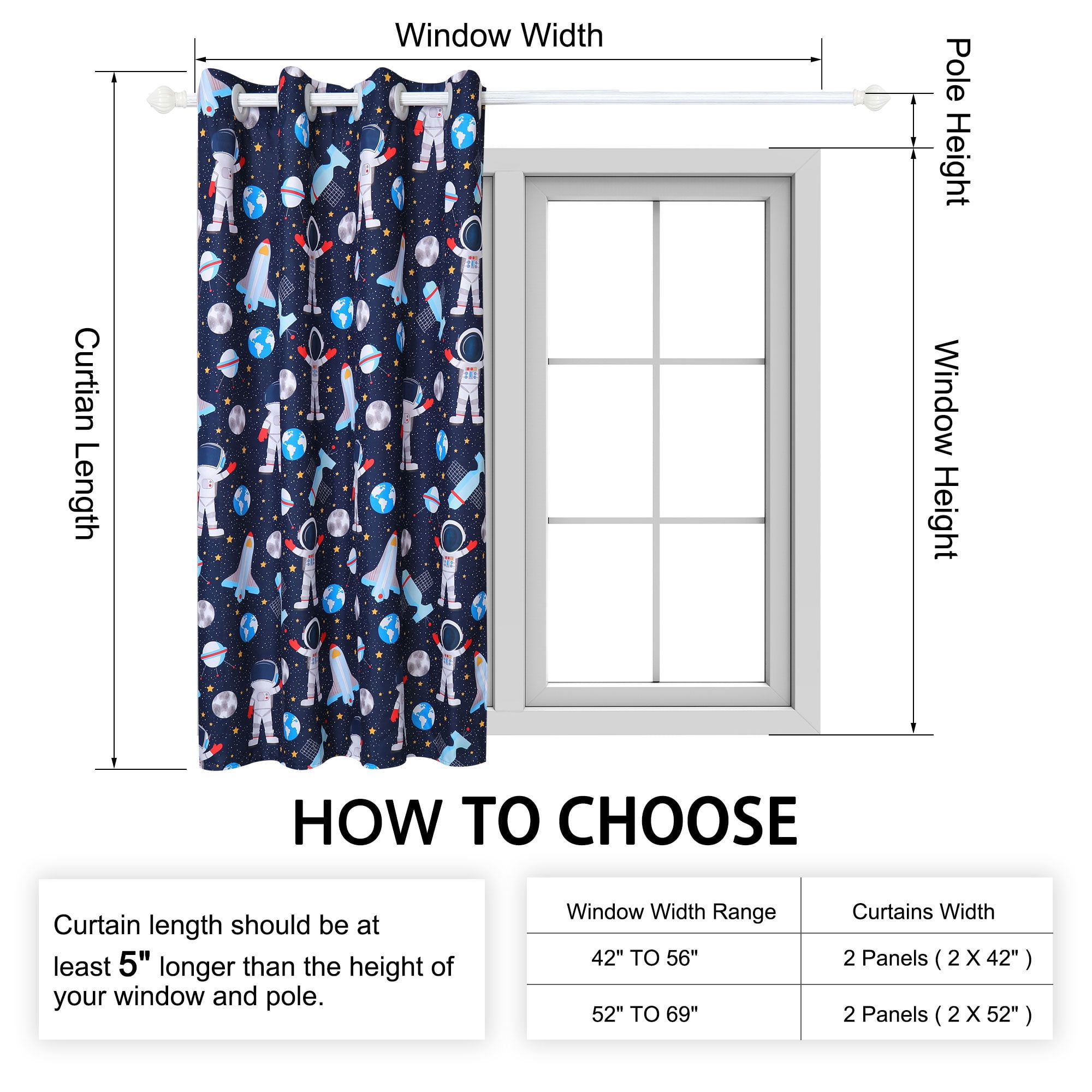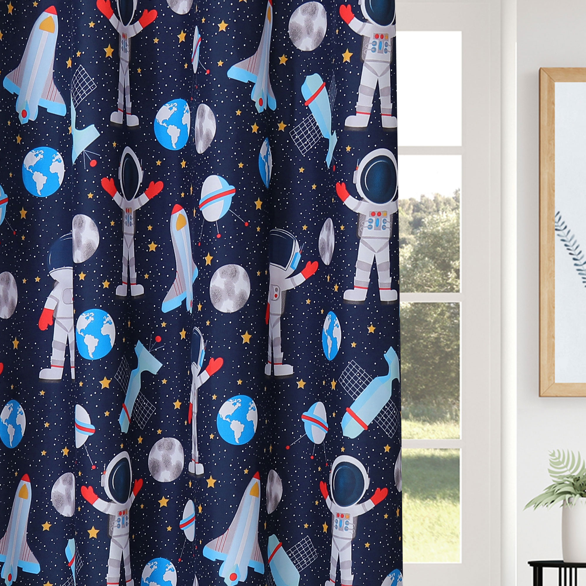 Unique Bargains 2-Piece Kids Astronaut Pattern Window Curtain Panel 52" x 63"