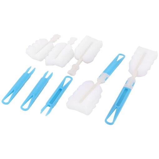 Unique BargainsSponge Head Detachable Bottle Tea Cup Glass Cleaning Brush Cleaner Blue 5pcs