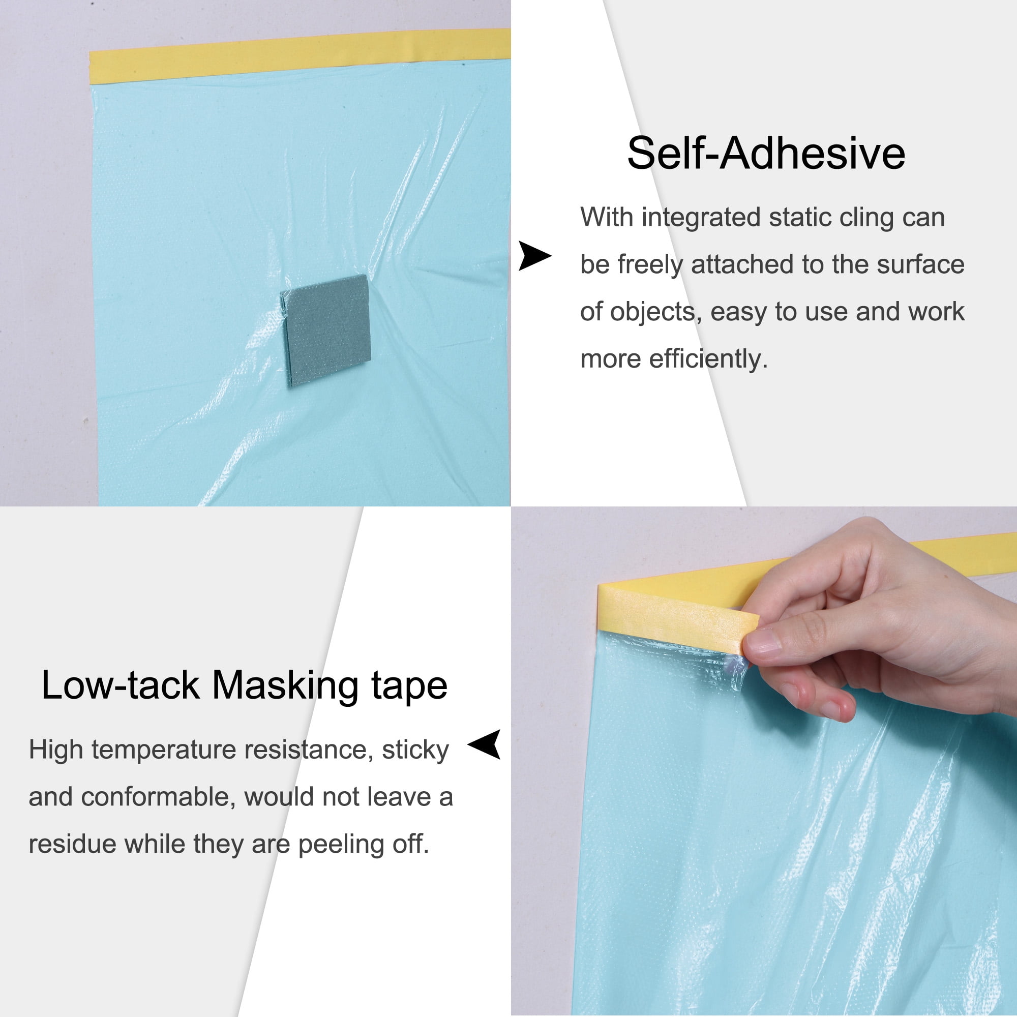 Uxcell 59 in x 82 Ft Pre-Taped Masking Film with Low-Tack Painters Tape for Painting Protection (Blue)