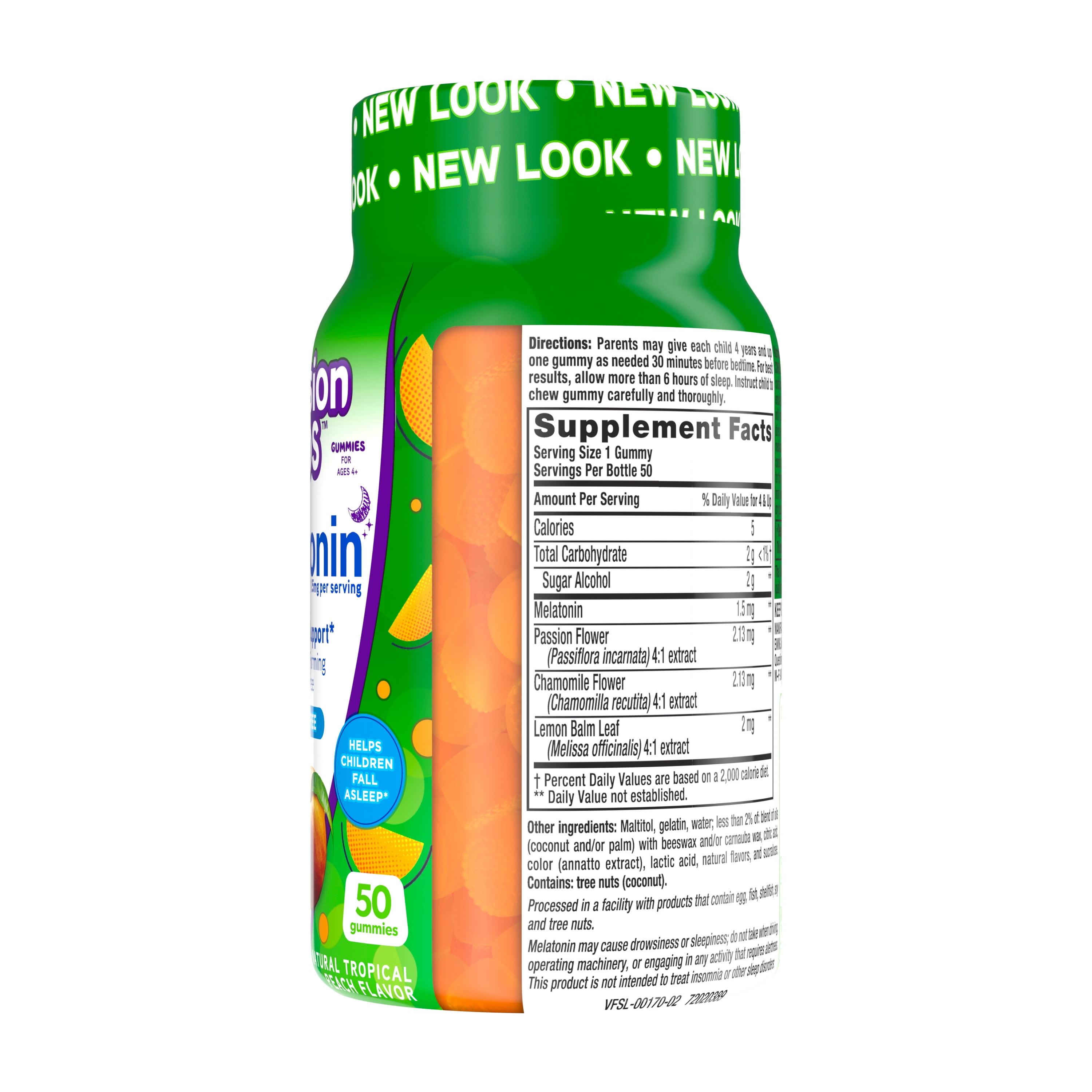 - Includes: One 50 ct bottle of vitafusion Kids Melatonin Gummy Supplements, Tropical Peach Flavored Sleep Supplements so even your little ones can wake up feeling refreshed and rested (1)