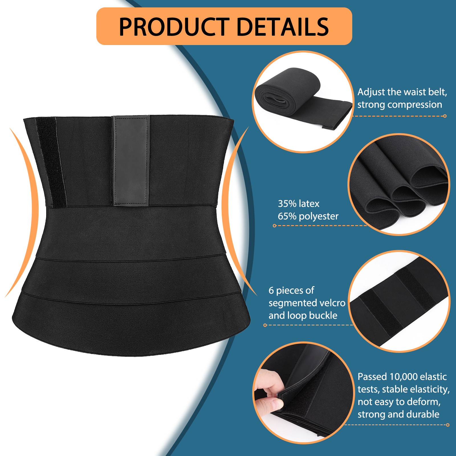 Sweat waist trainer adopts a segmented Velcro design with hook and Loop closure. Its 5 pieces of segmented stickers allow it to adjust the tightness more flexibly than others, and make people wear this waist band for stomach easily.