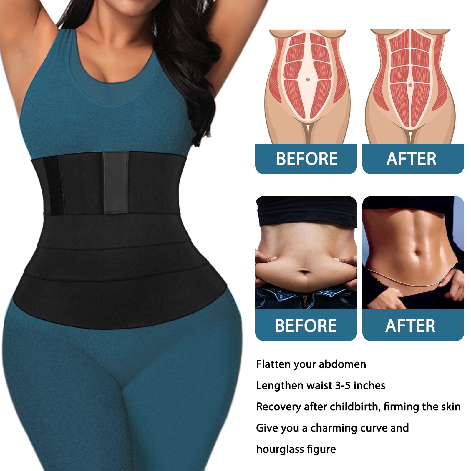 Waist Wrap for Stomach, Bandage Wrap Waist Trainer for Women, Body Shapewear Tummy Belt for Weight Loss & Lower Belly Fat Black