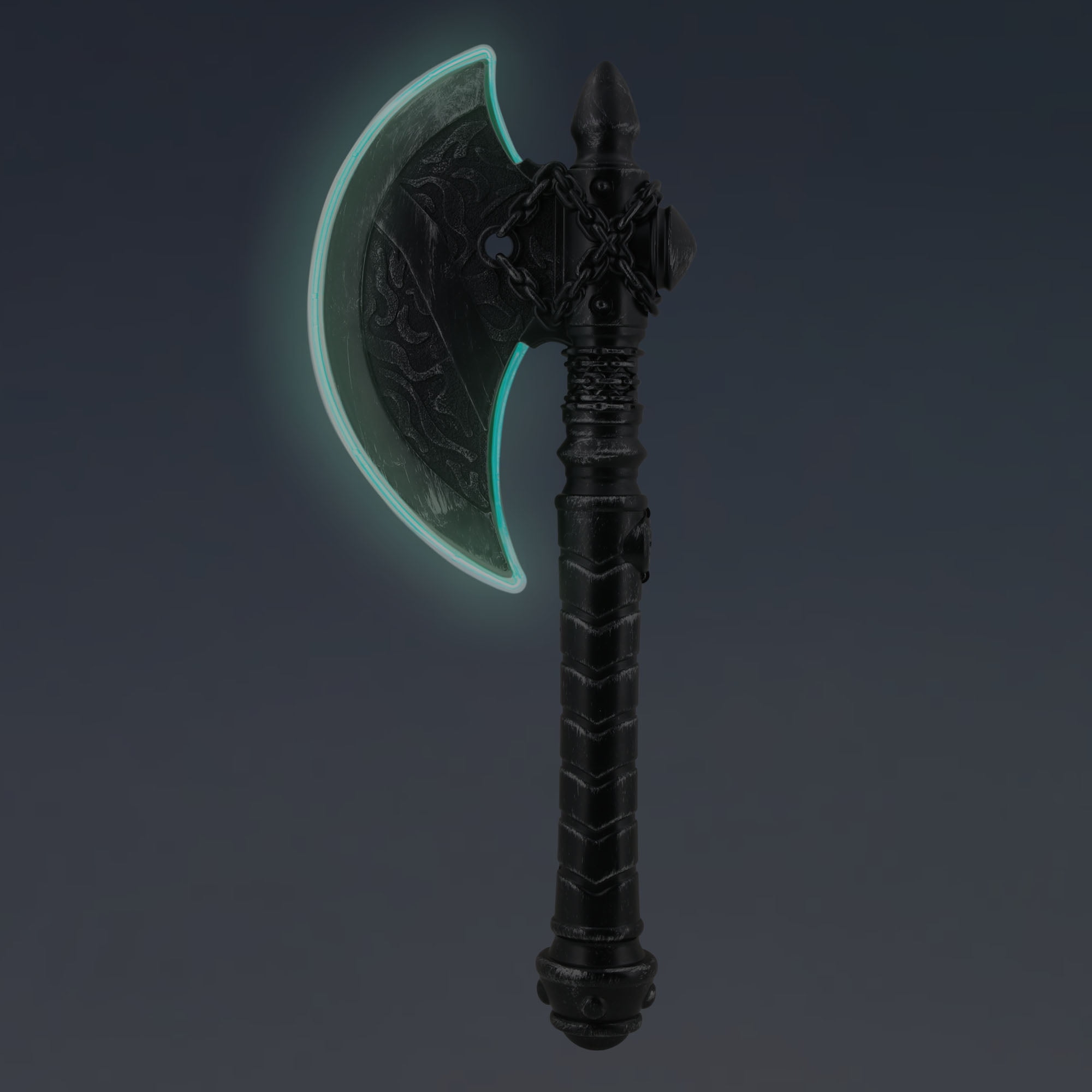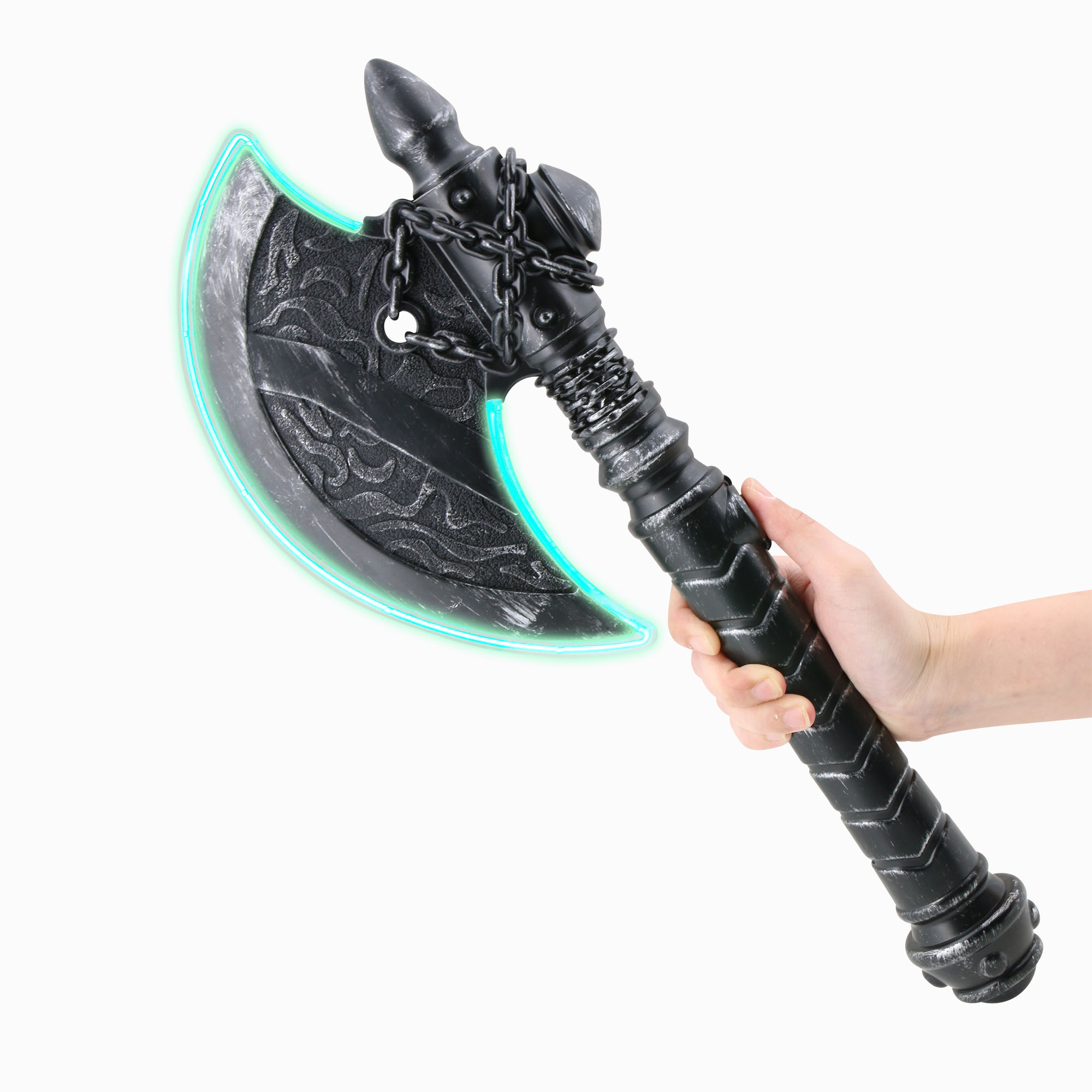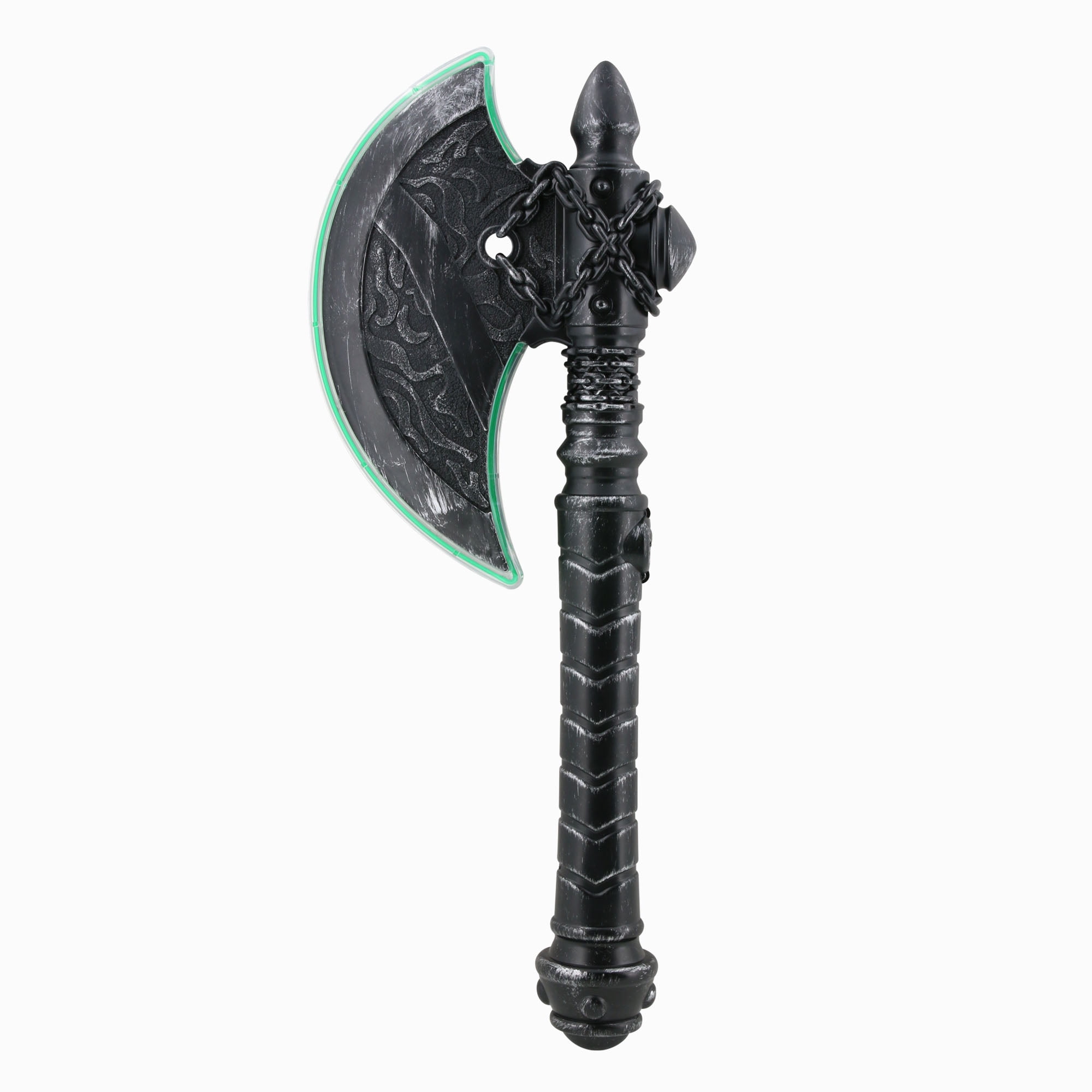 Occasions 16.5" long Halloween Glowing El-wire Lighted Toy Axe is by far the best light up axe on the market. The glowing El light around the axe lights up great in the light and in the dark. Push a button to switch from steady on, flashing or strobe light effects. Unlike other light up weapons, the light shows incredibly well on this unique axe. This Halloween lighted axe is great as a Halloween costume accessory and kids can play with it long after Halloween is over. Pair it with our Glowing El-wire Sword that is also available and your kids will have the two best lighted toy weapons in your neighborhood.