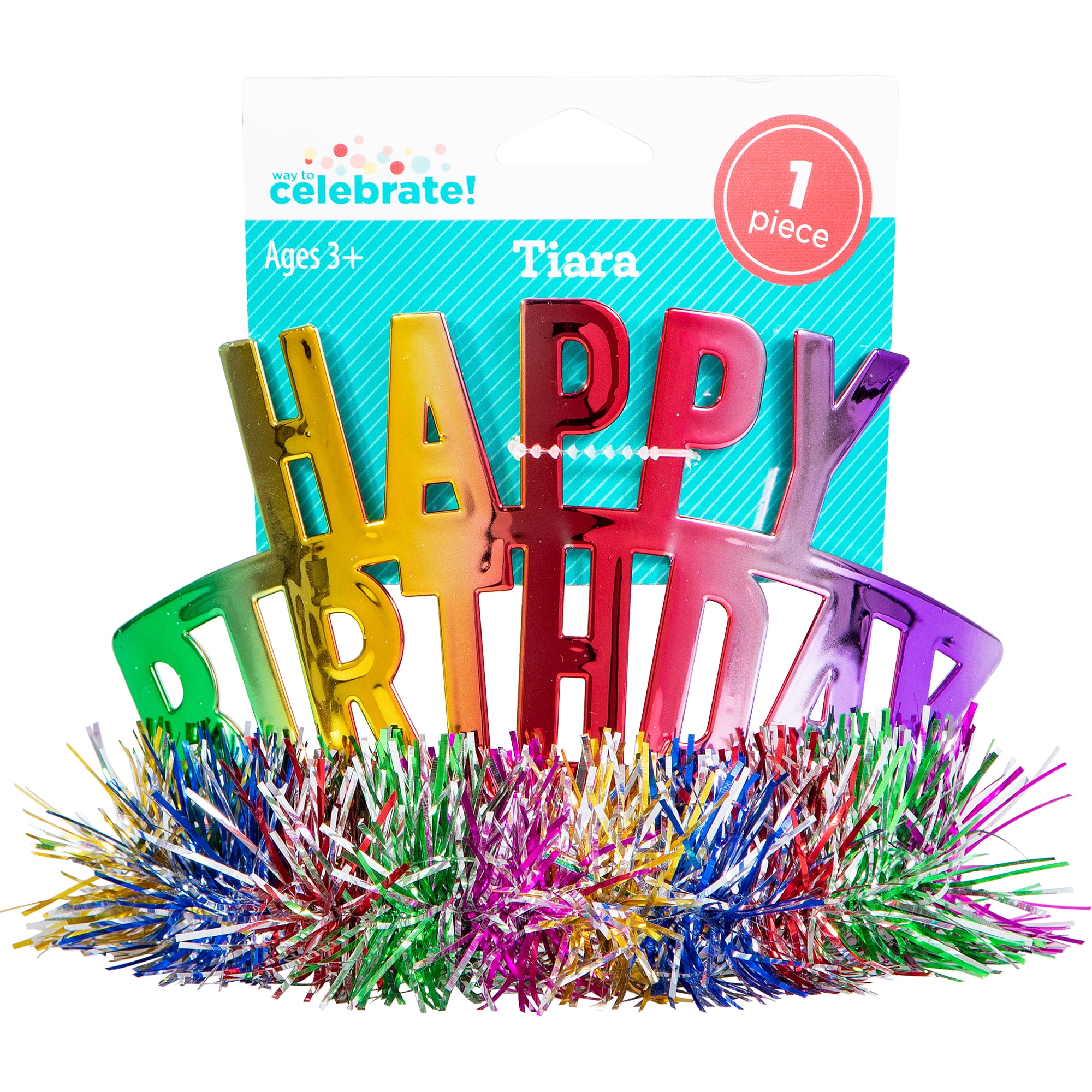 Make the guest of honor feel extra special on their birthday with the Way to Celebrate Happy Birthday Rainbow Tiara, 1 ct. Measuring 5.5" by 4", this tiara will bring a smile to guests’ faces and look extra cute in photos. Featuring the text “Happy Birthday” in rainbow ombre atop a crown of metallic tinsel, this tiara can be paired with any other birthday party supplies. Sold individually, grab yours today, and add an extra festive touch to your birthday party."• Each package includes a Way to Celebrate Happy Birthday Rainbow Tiara, 1 ct. • The tiara measure 5.5" wide and 4" high and features the text “Happy Birthday” in rainbow ombre letters atop metallic tinsel. • Perfect for birthday celebrations, this festive tiara will bring a smile to whoever wears it. • This celebratory tiara coordinates perfectly with other birthday party supplies. • Also, be sure to check out the other items from our wide selection of party supplies including additional decorations and tableware for all of your serving needs."