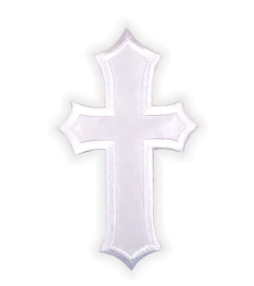 White Religious Cross (2.5′ Tall) Iron on Embroidered Applique Patch
