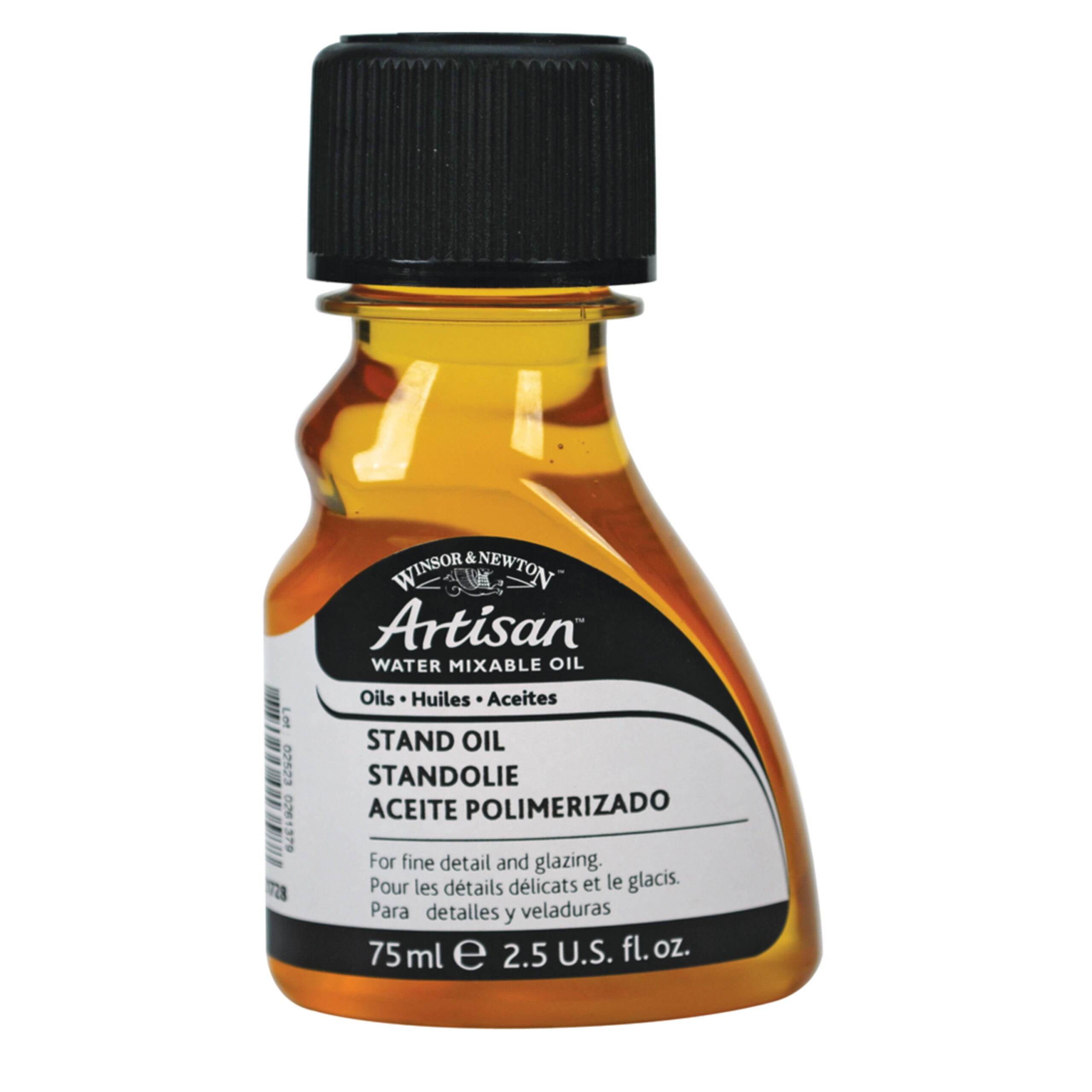 The flow and leveling of Winsor & Newton Artisan water-soluble oils is improved by using slow drying stand oil. It is excellent for glazing and producing fine detail, as it smooths brushwork out for a glossy, leveled effect.