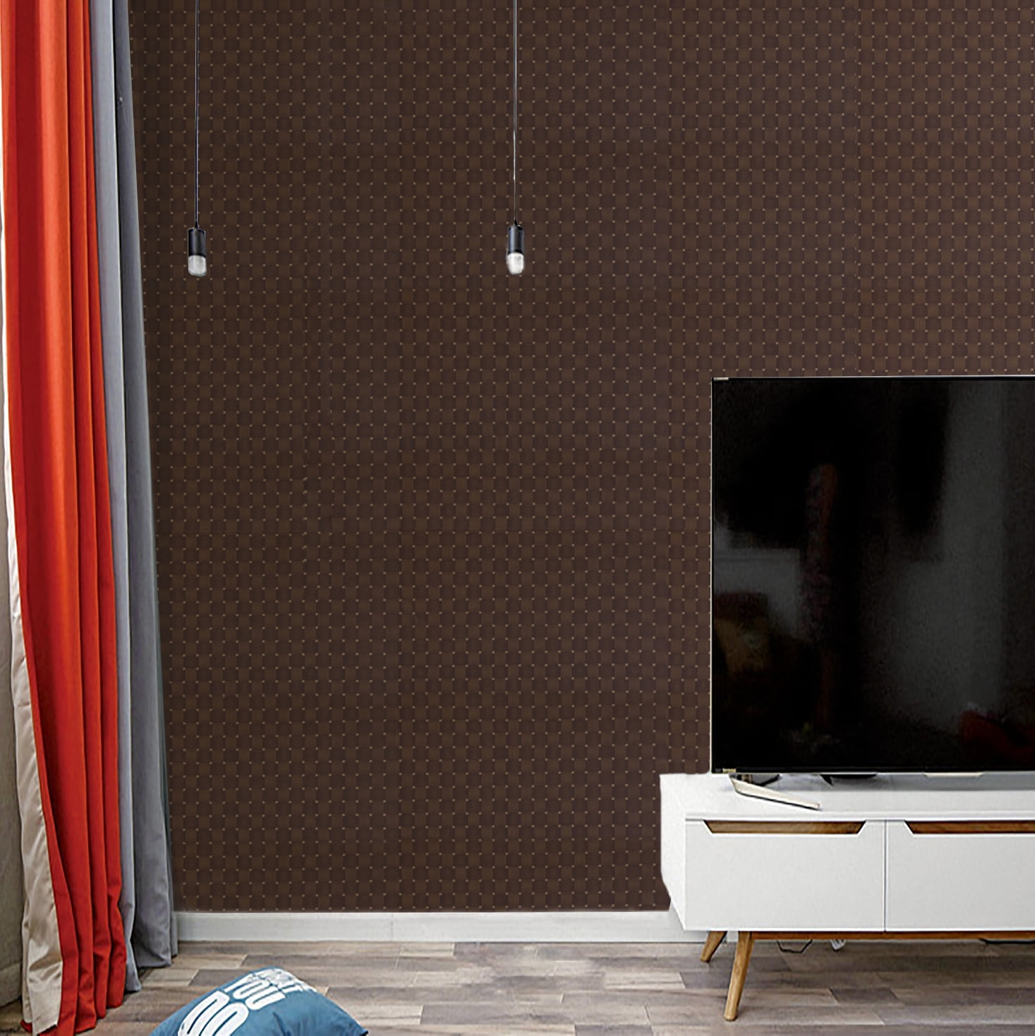 • Dundee Deco Peel and Stick Self Adhesive Wallpaper - Abstract Wooden Dark Brown Squares, Dots, 18 ft x 18 in