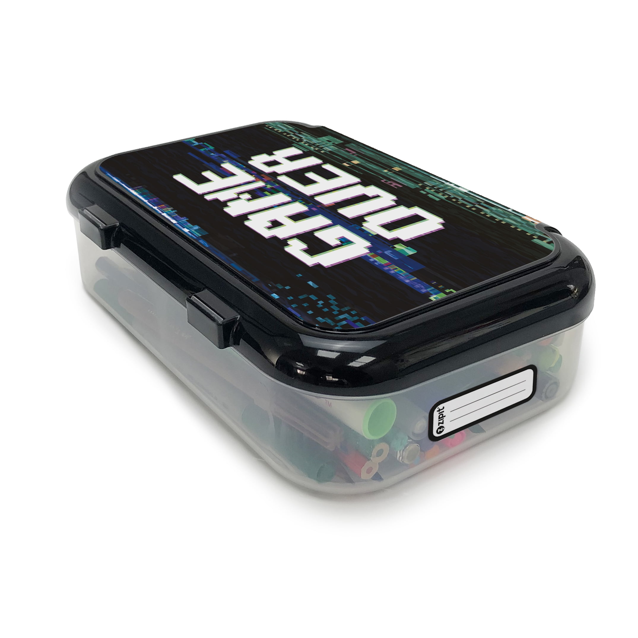 This blue gamer pencil box has it all: great looks and outstanding functionality. It’s sturdy, capacious and transparent so it’s easy to see what’s inside.