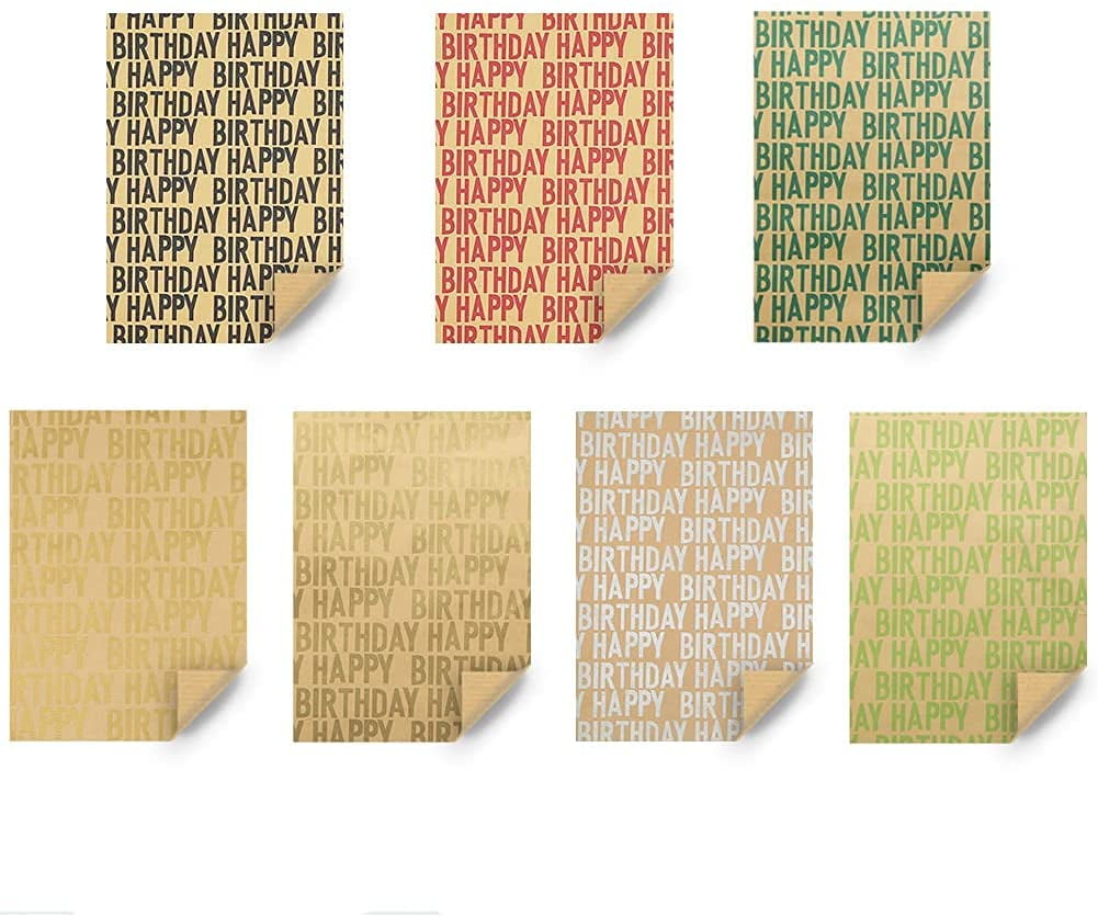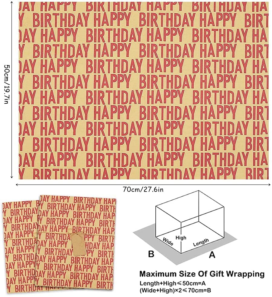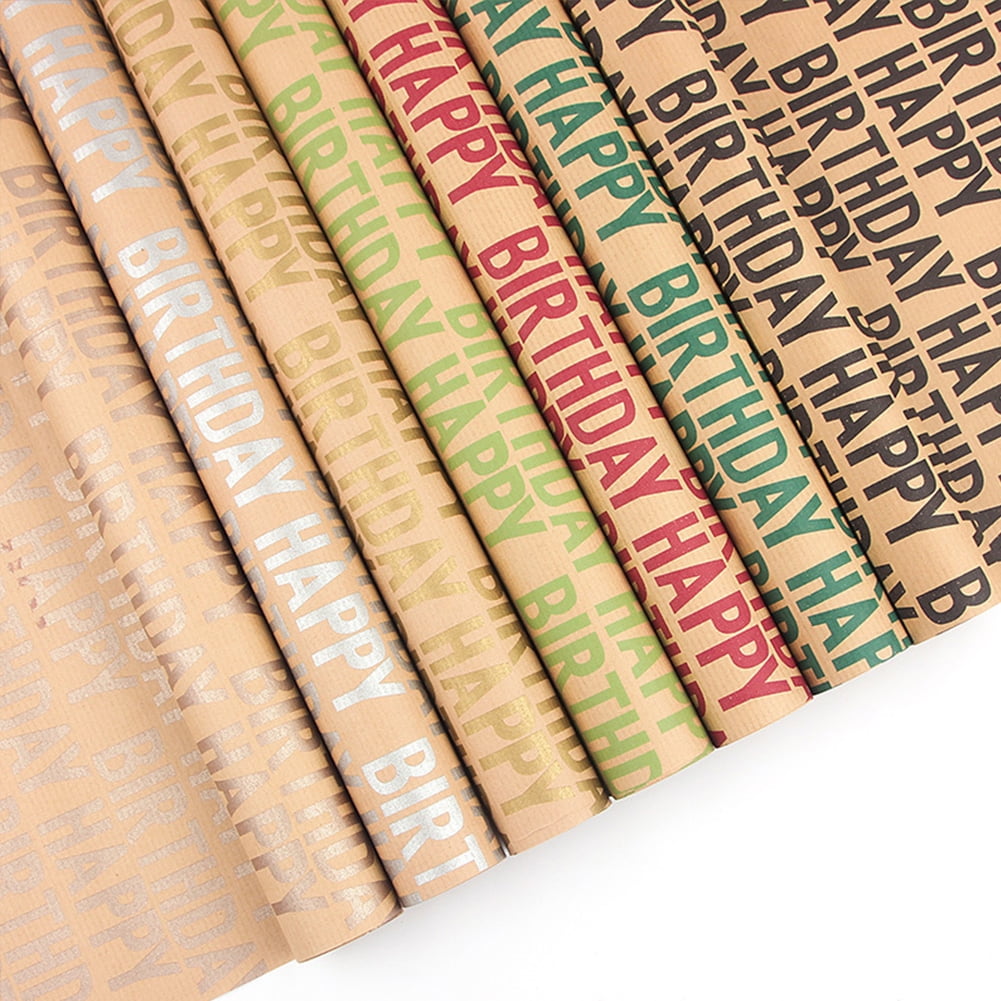 Happy Birthday Wrapping Paper For Boys Men Women Girls Kids, Gift Wrapping Paper, 6 sheets 20 x 28 inches Brown Kraft Folded Paper with Jute Strings, Stickers and Bows for All Birthday Occasions