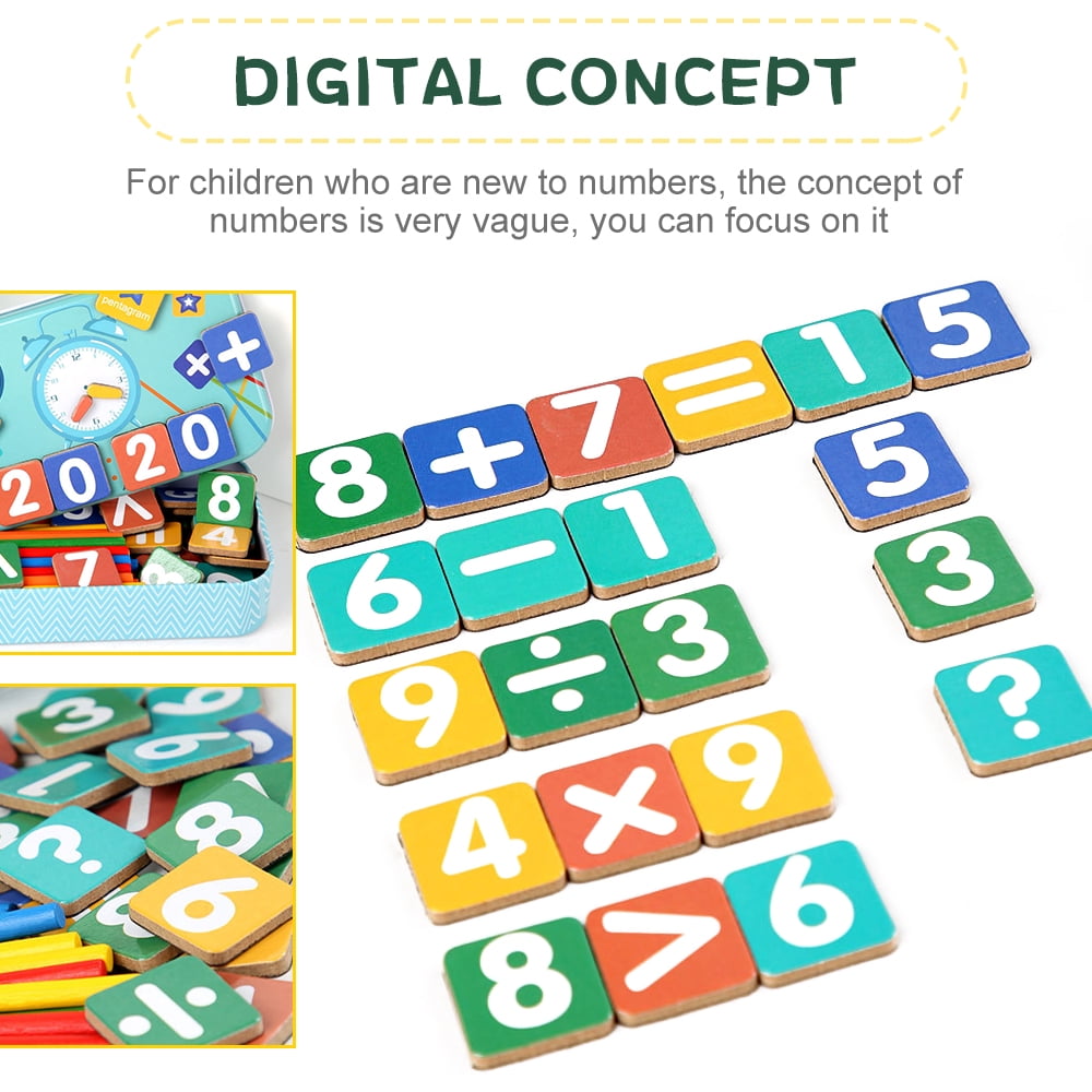 LNKOO 85Pcs Montessori Math Learning Toy Magnetic Counting Sticks Kindergarten Materials Educational Game Preschool Toddler Puzzle Wooden Number Blocks, Home school Supplies, Gifts for 3 Years Old +