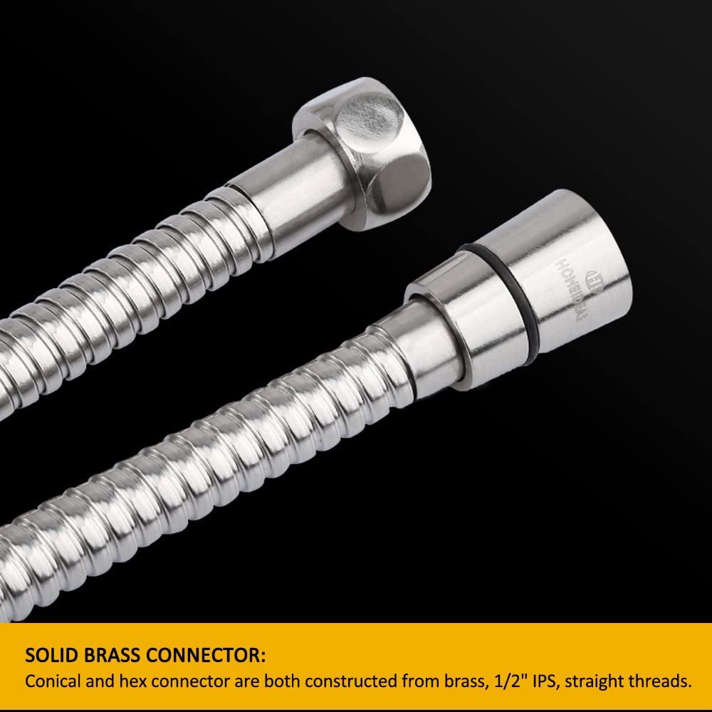 - 1. Exterior tube is made from premium 304 stainless steel, build to resist daily corrosion, scratch and tarnishing, with 4 PCS washers ensuring quality and longevity. TIPS: Washers Must be Put in Both Ends of the Hose When Install.